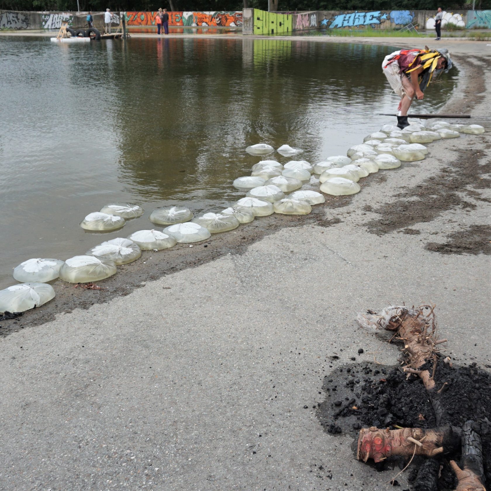 Een thuiswedstrijd zou gemakkelijker moeten zijn, maar de hittegolf maakt de lege betonwoestijn tot een moeilijk te veroveren ruimte. Er is geen architectuur om op te reageren en de diversiteit van materialen is er beperkt. Er heeft zich de afgelopen jaren wel een grote regenplas gevormd op het open terrein. Er is ook een aansluiting op het waterleiding en na een week blijkt de elektriciteit weer te werken en wordt de pomp in werking gezet die het water uit de vijver afvoert. Maar de kunstenaars zien mogelijkheden met de plas en vragen de eigenaar om de pomp weer uit te zetten. Er ontstaan verschillende ideeën voor land-art.