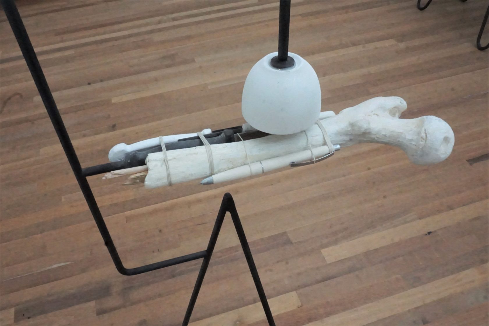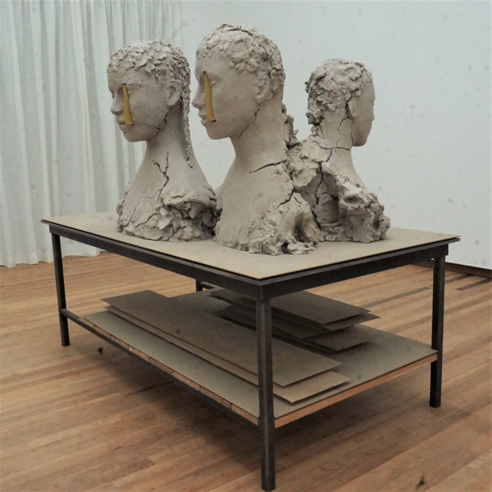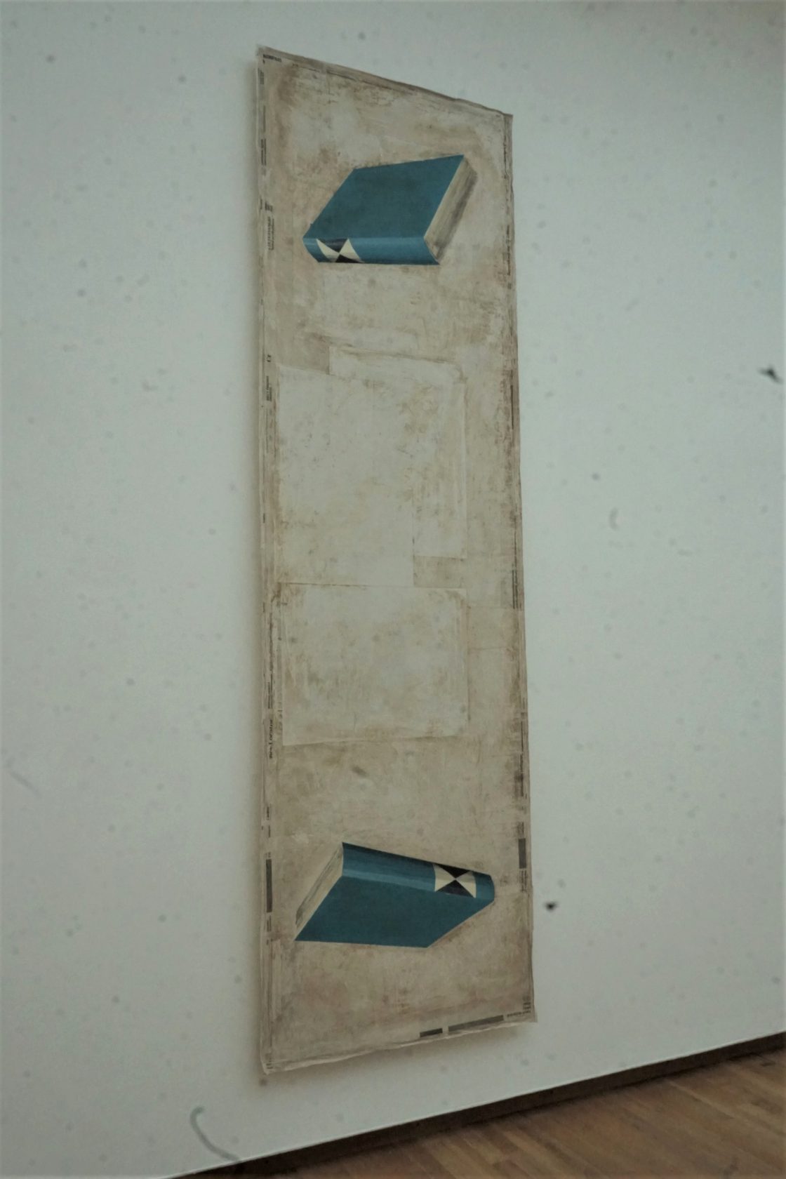 Dat geldt ook voor de tentoonstelling als geheel. Wij kiezen zelf of wij in een huiskamer, vergaderzaal, museum of atelier staan. Dat geldt met name in de laatste zaal waar een ateliersituatie is gecreëerd en die we bij voorkeur alleen betreden. Om in deze werk- en denkruimte te komen, volgen we een gang die is afgezet met half transparant plasticfolie en waarin onze tred in een fluisterend geruis wordt omgezet. Het tijdelijke karakter van de ruimte en de mix van materialen, gereedschappen en ‘onaffe’ werken dragen bij het idee dat een atelier vooral een denkruimte is. Net als in de rest van de tentoonstelling zijn het vooral de oudere werken die bij mij resoneren en het zoeken verbeelden.