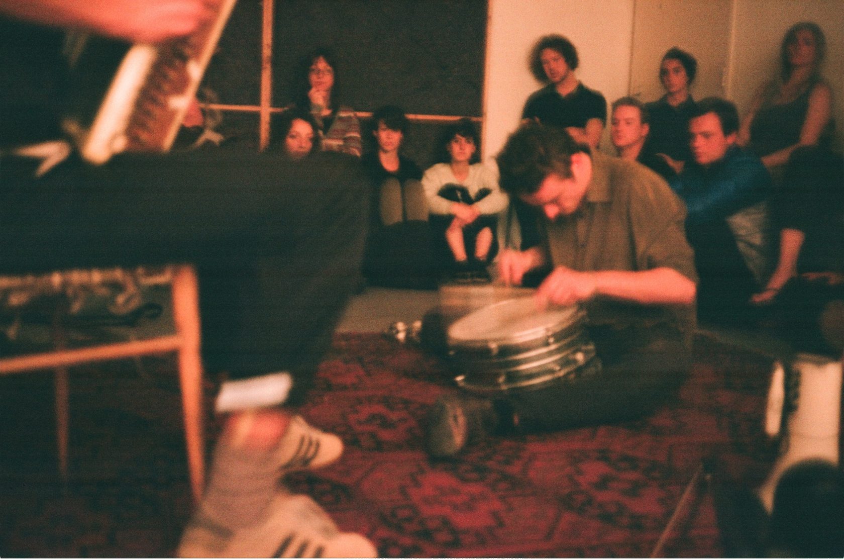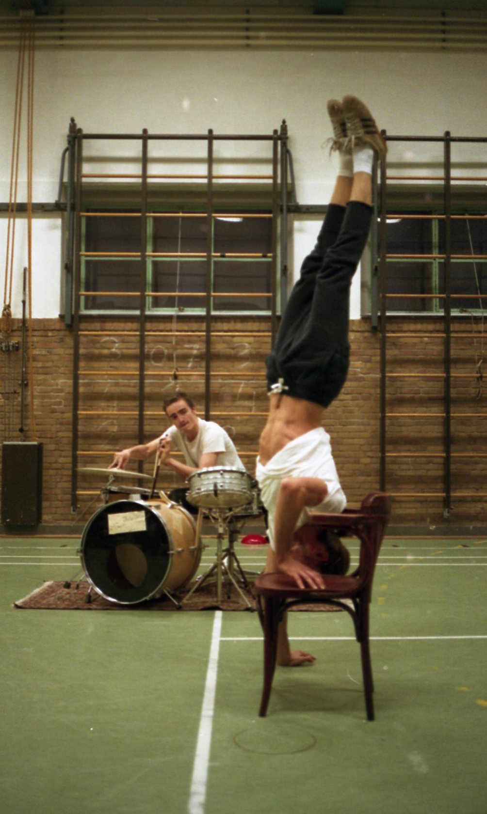 Zahar is trained as a professional acrobat. I grew up making music and playing concerts. The physicality of performance and the social element are very important. We both studied sculpture in art school and met in my third year. He walked by my studio, saw a drum kit and decided to play. Although he hardly spoke English, we managed to communicate by playing music together and wrote a piece together.