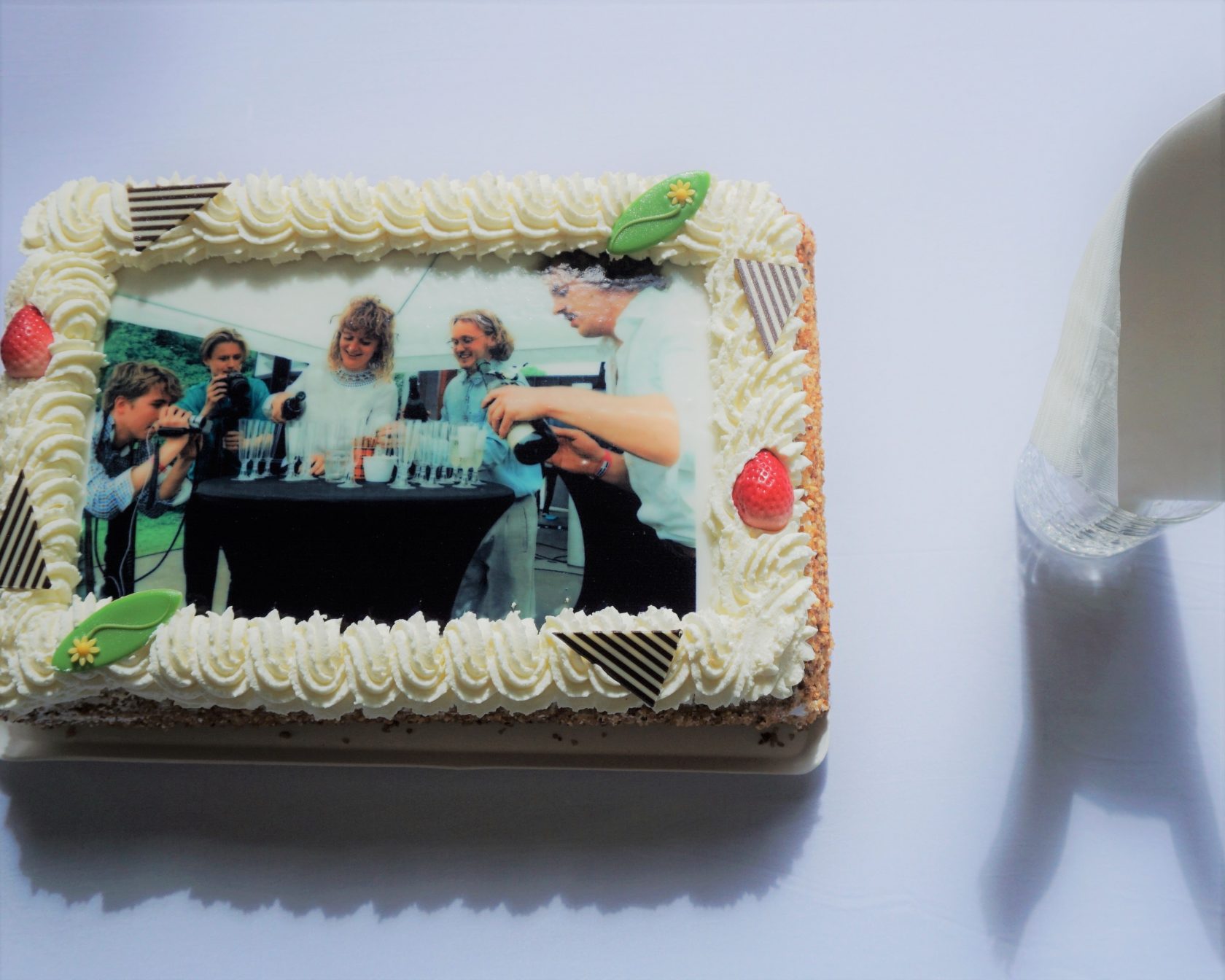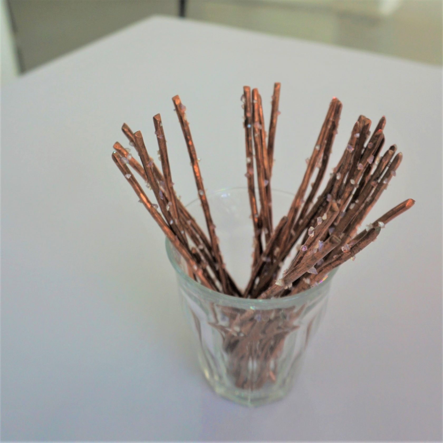 Het meest verwelkomende werk komt van Loui Meeuwissen die als ‘gevierd’ kunstenaar gespecialiseerd is in receptionele installaties. Aan de voorzijde van de tentoon stellingsruimte heeft hij een neutrale feestelijke receptietafel geïnstalleerd waarop twee taarten met servetjes klaar staan. De rest kunnen we er zelf bij bedenken. Op de als altijd te blauw geprinte fototaarten zien we respectievelijk een gezamenlijk ‘inschenkmoment’ met champagne en het ‘dekselopenmoment’ van een taartdoos. Ook de Pavlovreacties ‘Lekker, hoor!’ en ‘Ach wat leuk!’ komen meteen in gedachten. Daarbij heeft de Amsterdammer de Haagse kunstenaar Anouk van Klaveren uitgenodigd om ook een duit in het zakje te doen. Haar antwoord bestaat uit ‘zoute sticks’ gemaakt van koperdraad en kleine diamantjes, die in een typisch Duralex glaasje op een bijpassende statafel zijn bijgezet. Met een royale bos bloemen tussen de twee elementen. Het gaat precies om dit soort ingesleten en geïnstitutionaliseerde feestmomenten die van een andere kant bezien een depressieve vernauwende treurigheid in zich dragen. In hoeverre deze installatie nog performatief zal gaan uitpakken zal de avond verder moeten uitwijzen. De kunstenaars hebben in ieder geval geen script voorhanden.