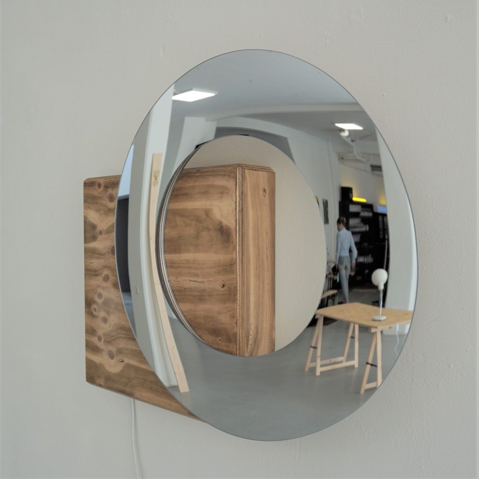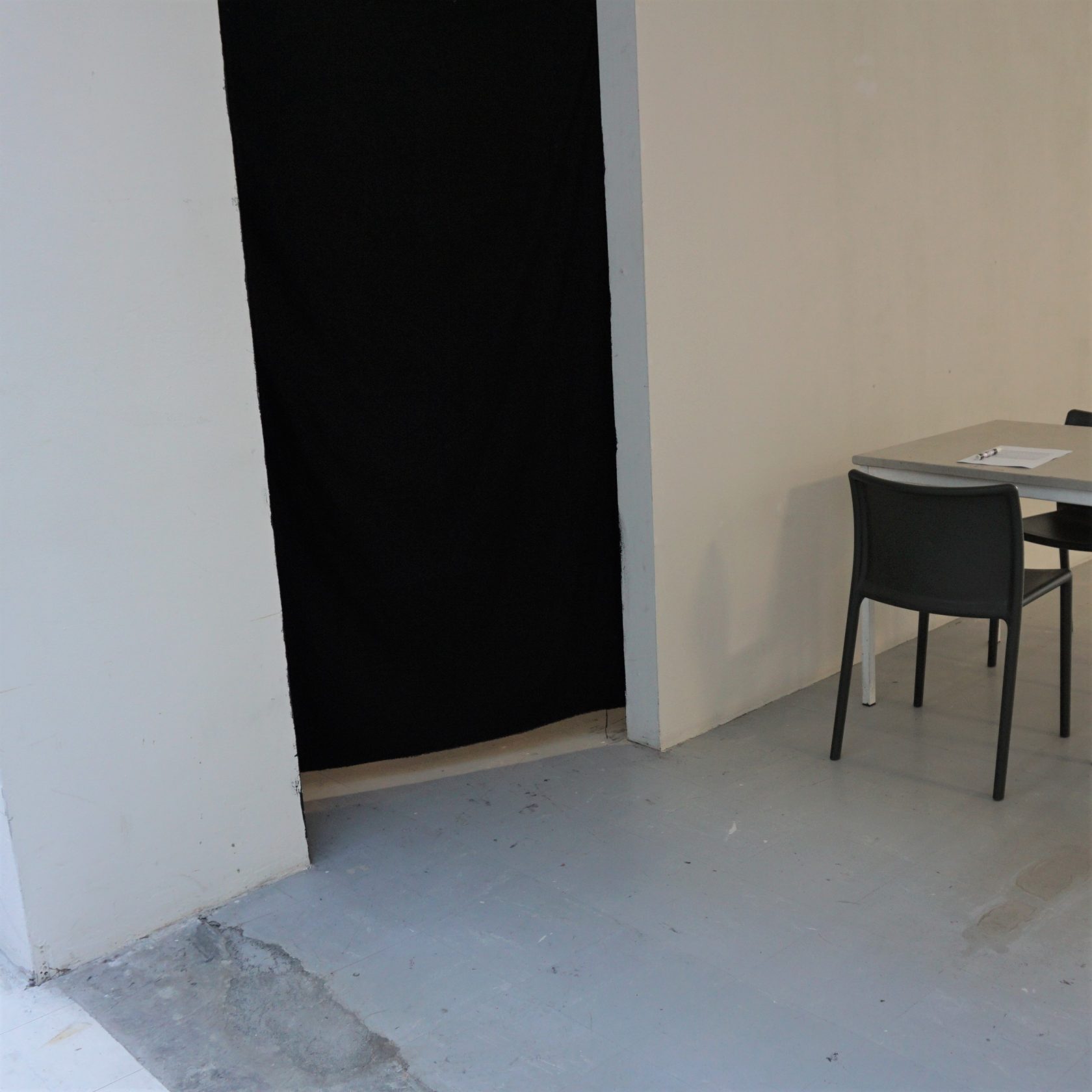 Voorlopig minimale bijdragen van Pim Kerssemakers met een cirkelspiegel dat ‘nog niet’ draait en Aukje Dekker, die in haar afgeschermde kamer nog bezig is met de voorbereidingen van haar 1-1 performances. Net als bij Loui Meeuwissen wordt de bezoeker hier vooral met zichzelf geconfronteerd.