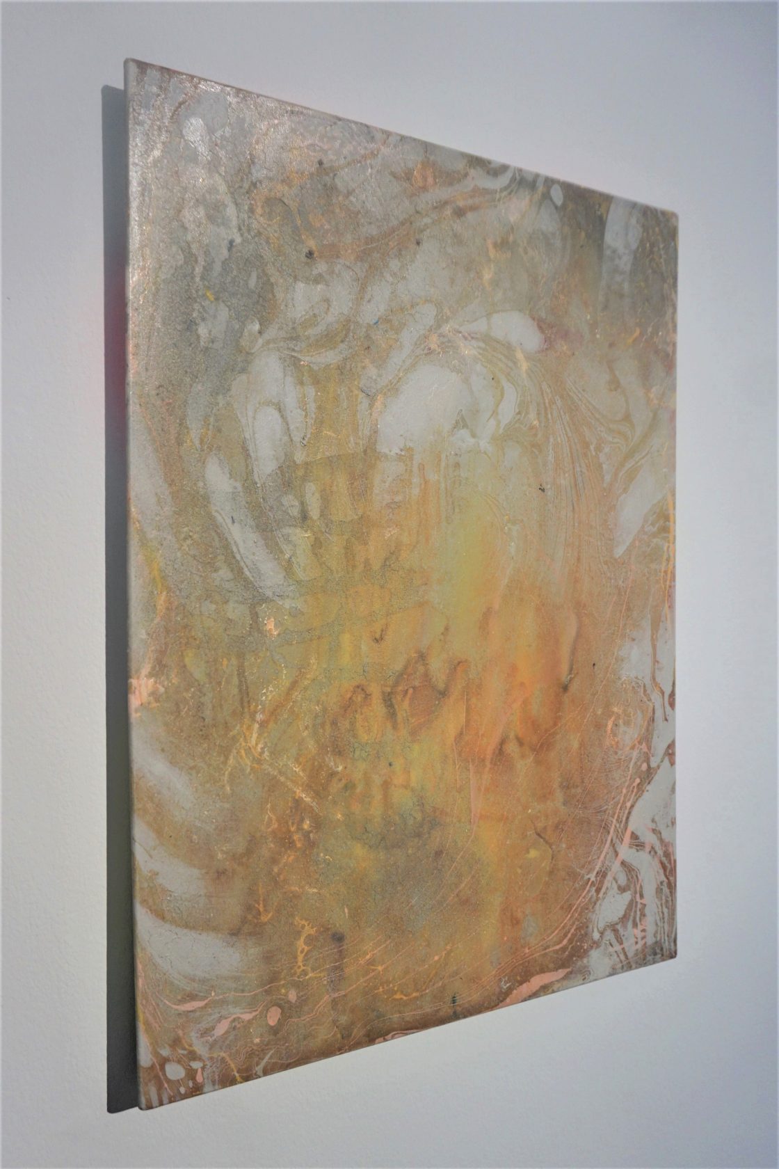 It loses its effect on bigger formats. And from the last hundred years, we have much more knowledge on how to make a painting, also from an abstract point of view. You can use this knowledge together with the ancient marbling techniques to see if you can create this vibrant quality, in which you can see there is something happening and still you don’t know what it is. It just gives constantly. I made the panels concave to add a relief, like the face that was carved into a stone and when you pass by. it keeps looking at you. That is what I wanted to achieve. A marble that would keep looking at you. I wanted to stick all these techniques from different centuries together within one work.