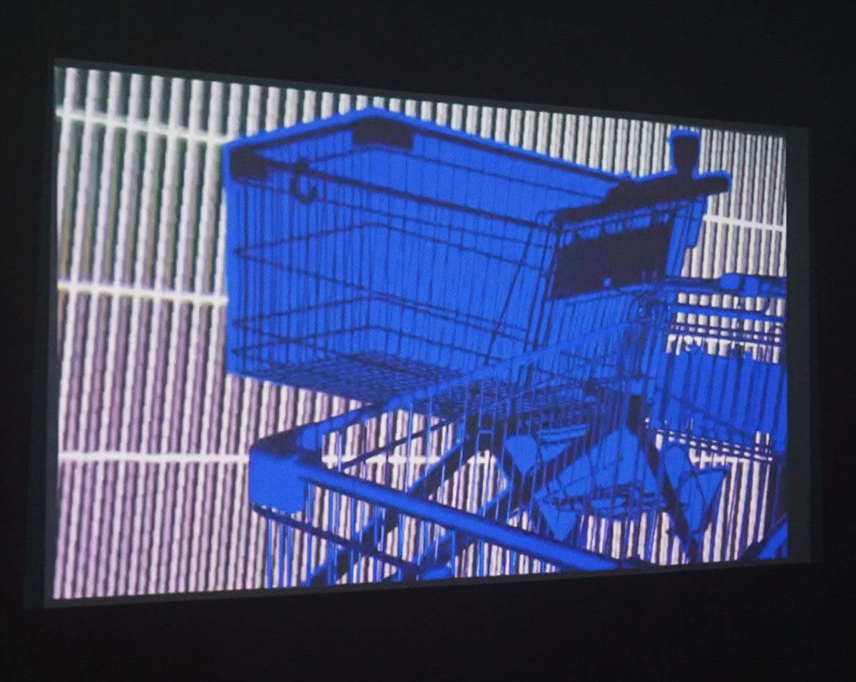 Een doorsnee supermarktkarretje wordt met LED-licht van onderen bestraald. Martin van Staveren van het collectief A Visual Conspiracy is nog druk bezig met het maken van de juiste compositie die een levendige en hallucinerende schaduwwerking op de wand moet veroorzaken. Ter plekke wordt de definitieve compositie opgenomen voor de vertoning tijdens de expositie.