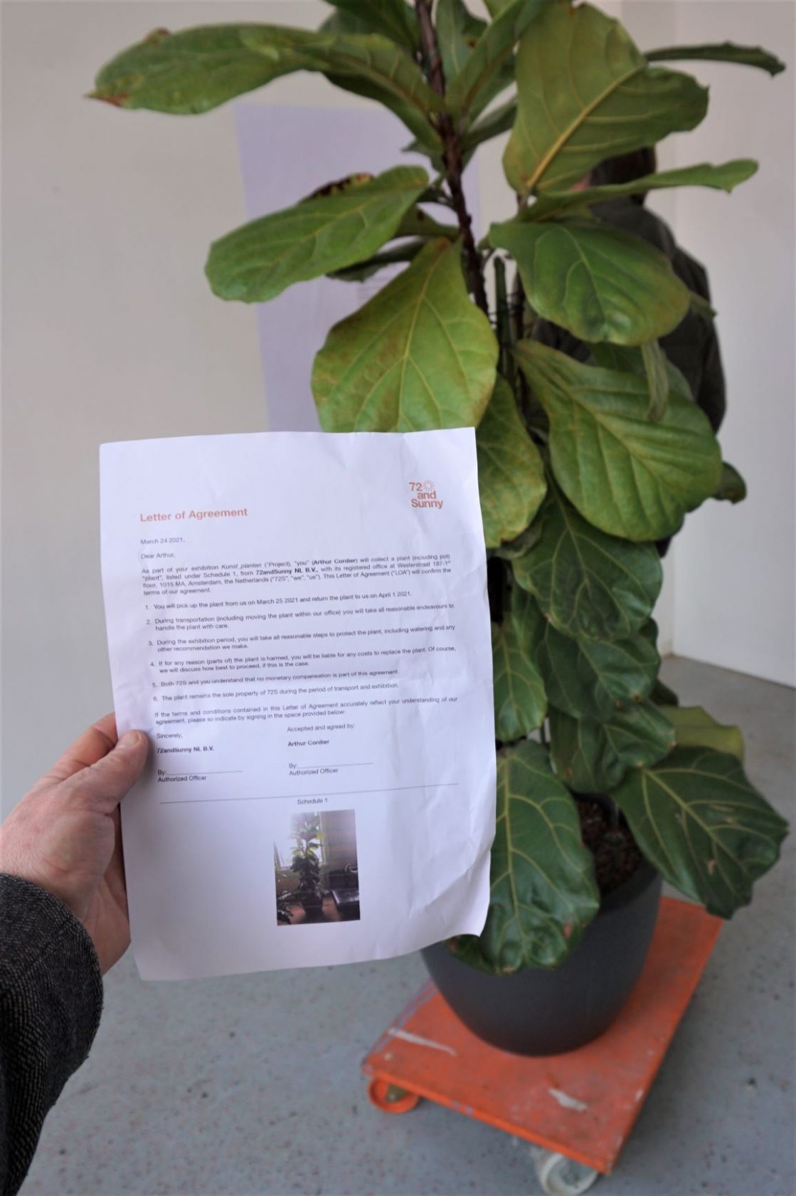 Het idee voor Kunst_planten is ontstaan als antwoord op de uitnodiging van Alexander Webber (Hgtomi Rosa) om te reageren op het thema ‘open’. Het is de tweede kortdurende presentatie in de serie Acts of Opening bij Hgtomi Rosa, het kunstenaarsinitiatief dat is gehuisvest in broedplaats De Besturing in de Haagse Binckhorst. Dit voormalige industriële gebied wordt gestaag omgevormd tot woon- en werkwijk, dus de fabrieken en garagebedrijven maken in hoogtempo plaats voor keurige kantoren in bedrijfsverzamelgebouwen. Het is dan ook niet toevallig dat Arthur Cordier op zoek gaat naar enig teken van leven in de kantooromgeving. Volgens onderzoek bevordert de kamer- of kantoorplant de productiviteit van medewerkers met 15%. Bovendien geeft het een bedrijf een gastvrije uitstraling. De plant mag dus niet ontbreken in een representatieve kantoorlobby.