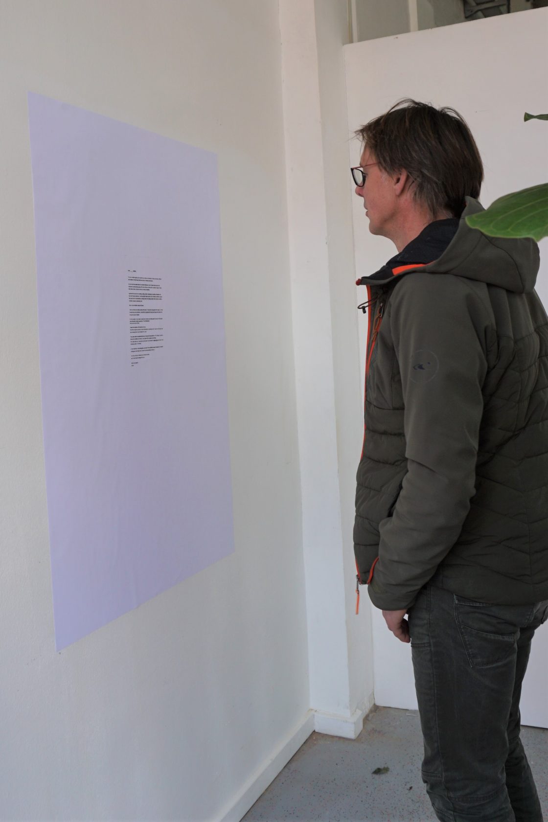 In Hgtomi Rosa hangt de brief die Cordier naar de bureaus stuurde. Geprint op een groot vel wit papier krijgt de ‘niet uitvergrote’ brief toch monumentale proporties. Het benadrukt Cordiers interesse in de verschillende communicatievormen tussen kunst en commercie en de kunstmatigheid van wat wij arbeid of een product van arbeid noemen. Vandaar de keuze voor een branche die zichzelf het liefst definieert met het benoemen van haar jaloersmakende klantenportefeuille of terminologie als ‘positivity’ en ‘strategy’ en ‘concept’ en dat op hun eigen websites de grootste moeite heeft om te vertellen wat ze zelf nu eigenlijk precies zijn.