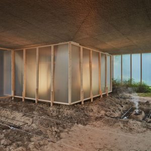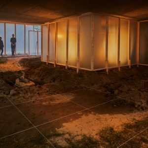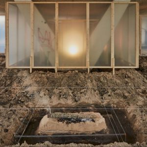 Voor FIBER maakte ik deel V van Every Future. Rondom de betonnen vierpoot onder het Tolhuistuingebouw (voormalig Shellgebouw) had ik een geënsceneerd terrein gemaakt met drie ‘grafachtige’ plekken. En jawel, met de hand gegraven!