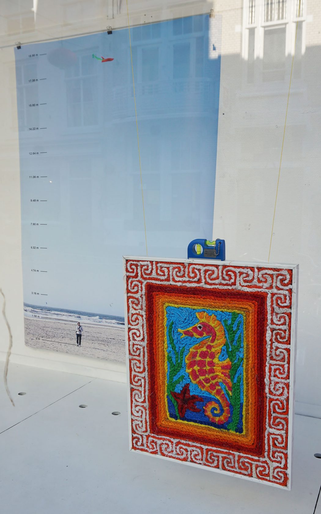 We beginnen bij projektruimte West End waar veelal thematisch wordt geprogrammeerd. Waarschijnlijk kun je er op afspraak ook nog wel naar binnen maar tijdens onze wandeling drukken we onze gezichten (en camera) tegen het raam. Ook binnen is er ruimte voor lucht, met onder andere een nieuwe hygiënische ronddraaiende installatie van Pietertje van Splunter en een luchtzuiverende video van Emily Anderson die ook online te bekijken is.