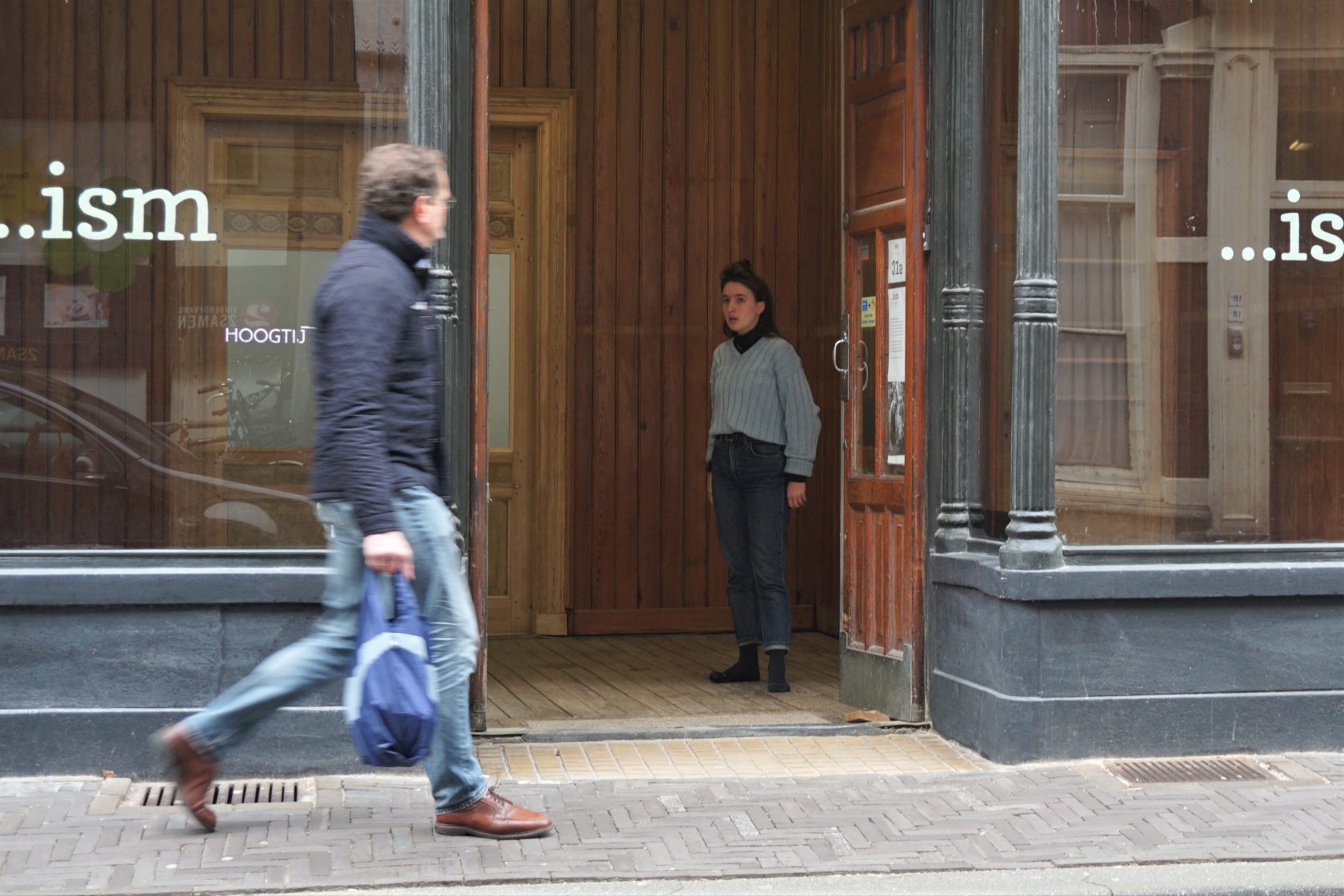 En voor wie het heeft gemist… performancekunstenaar Alexandra Verschuuren was twee weken lang dagelijks te zien in de voormalige winkelruimte van …ism project space. In samenwerking met toevallige voorbijgangers onderzocht zij onder verschillende omstandigheden hoe contact tussen binnen en buiten tot stand komt.