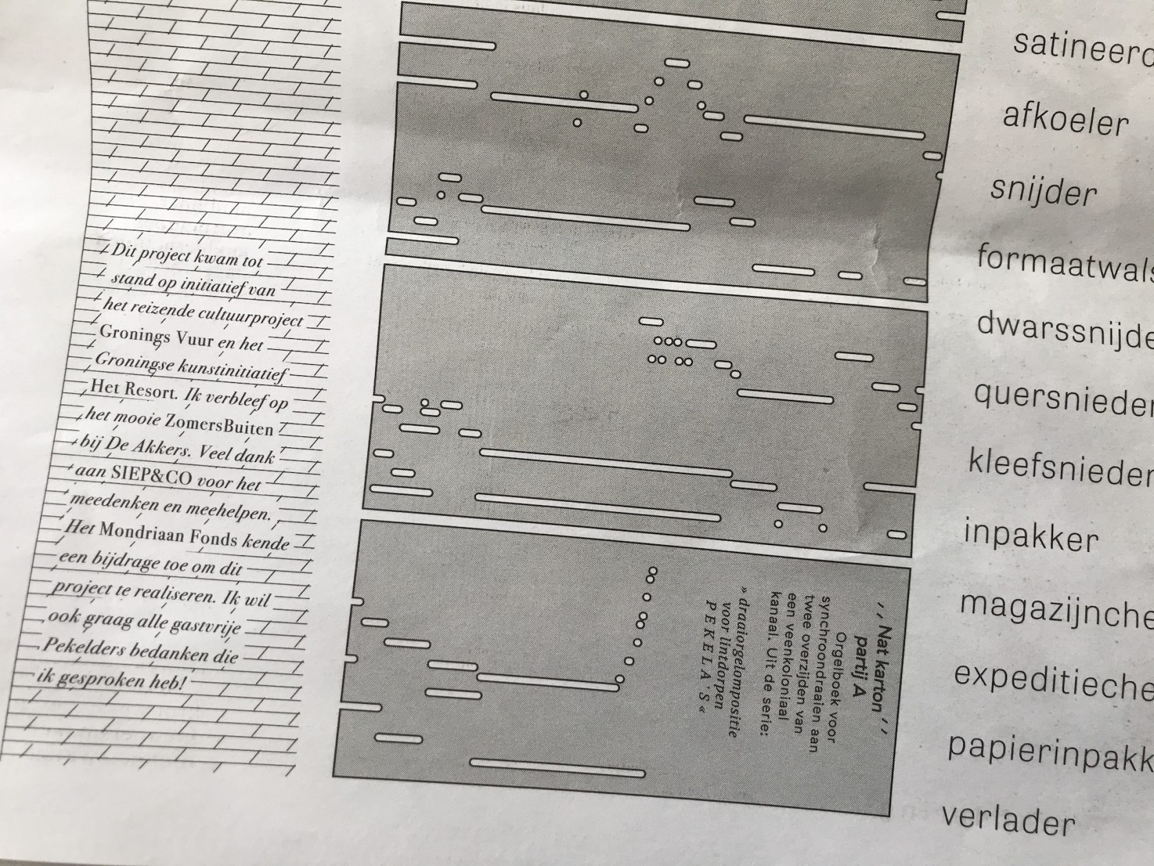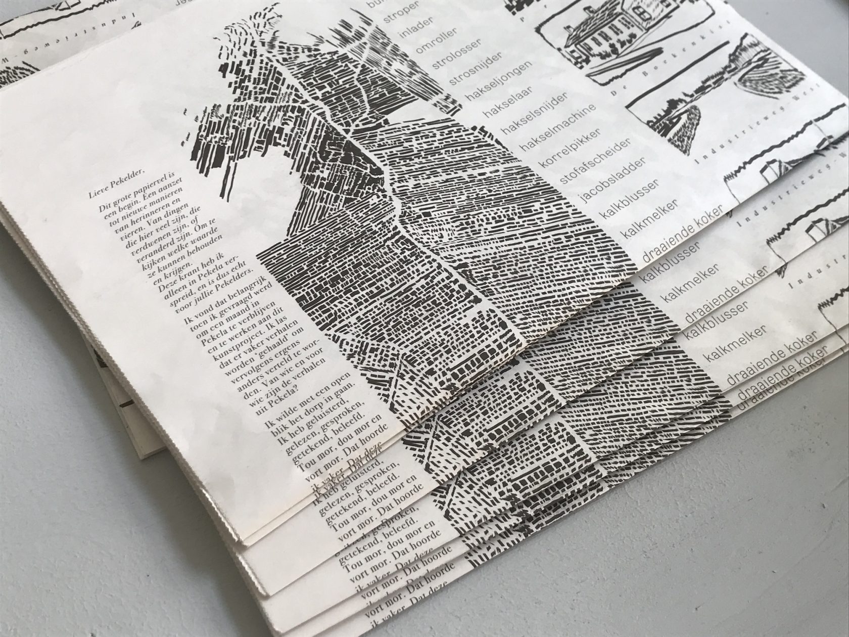 When you observe the video and the newspaper you notice that Scholten steers clear of what usually tends to dominate the discourse concerning the village and its surroundings (eg. the earthquakes or the bad reputation about the quality of life) and instead he talks about the local history, language and traditions. A lot of which was informed by his collaboration with the former strawboard factory Siep&Co. Also, rather than focussing his efforts on making artwork meant to extract the cultural diversity from Pekela to be enjoyed elsewhere, you can tell that he mostly invested his time and energy into coming up with something that can also be enjoyed by the local population, even during the corona crisis. The solution he came up with was to turn all his findings into a newspaper he made especially for Pekelders (the people of Pekela), which was printed in an edition of 6500 and subsequently delivered door-to-door by himself. The newspaper features a list of words that are related to the strawboard and peat digging industry along with many suggestions on how to revive those words, such as using them for memes, music or in spoken language. There are also suggestions for other projects such as using barrel organs playing in sync on either side of the central canal. Looking at the responses of the local residents in the video, I highly doubt that any of these suggestions will ever actually happen but what the newspaper mostly does is trying to give new energy to the local community and point at what could be lost if they don’t safeguard it. It is giving new ideas about what could be done to reinforce, revive and celebrate their cultural identity and for them to truly claim their history and stories as their own, rather than letting anyone else run away with it.