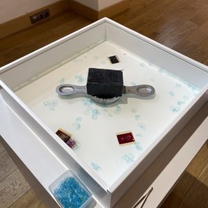 The exhibition with the first results of this ever-expanding network opened on April 8. With the generous help of a small team, Batkova pulled off an impressive project, composed with the utmost attention to every detail. The entries from the first group of 55 artists, each consisting of a white box carrying its content, for a larger part reveal (elements of) personal stories that provide insight into a specific view or way of thinking about everyday events that you may encounter in human life.