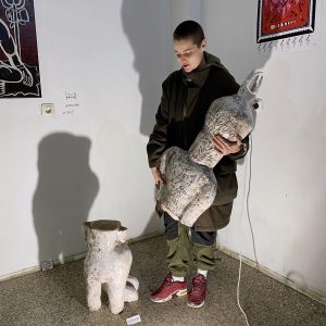 Just before my departure back to The Netherlands, I was lucky enough to catch a preview of Daniela Kostova’s solo exhibition, Storms, Park and Princesses with Hair Rollers at Structura gallery. In a clever way, Kostova managed to find a light-hearted tone to represent her reflections on current times in which the consequences of the Corona crisis on our daily lives are present but sometimes hard to grasp.