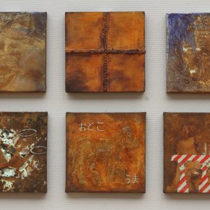 Ik begon ‘s ochtends te lezen. Als hetzelfde nieuws in verschillende media stond, besloot ik daar een titel op te baseren. Daarna begon ik met het prepareren van een doekje van 20 x 20 cm. Ik werkte al een tijdje met roest, maar als je gewoon roest op een doekje smeert, is het binnen een week weg.