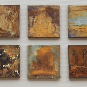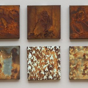 Door die reactie blijven de schilderijen met de tijd een beetje van kleur en vorm veranderen. Ik leg het ook zelf vast op foto’s zodat ik per periode de veranderingen zie. Dat maakt het extra interessant voor mij om met roest te werken. En ze zijn ook niet te restaureren! Het werk werkt door.