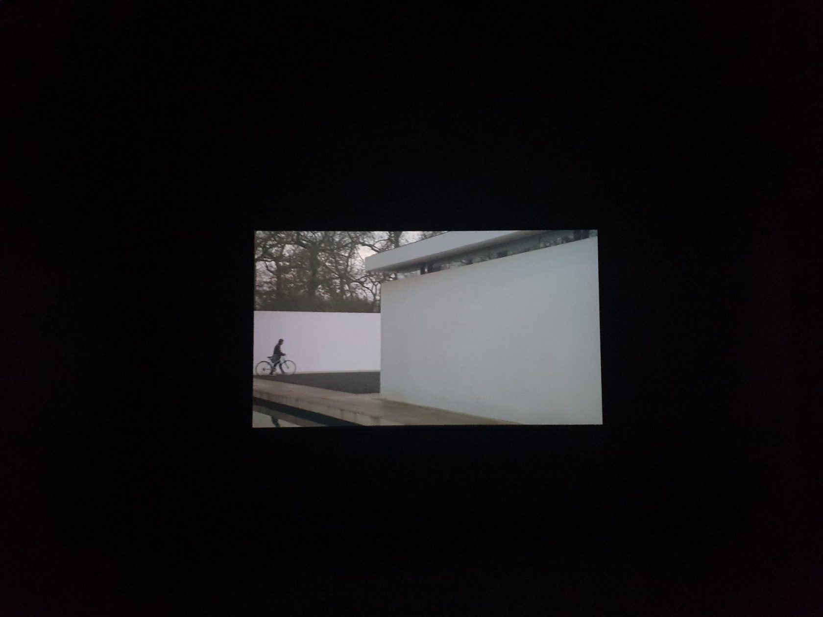 Als ‘sinister’ als woord in een beeld geschetst kan worden, dan denk ik aan deze video. Juist in deze ruimte die geen ruimte geeft, waarin adem stokt en identiteit niets is, lijkt tijd oneindig en eindig tegelijkertijd. De ochtend wordt dag, de dag avond – einde werkdag. Ondanks de lineariteit van de tijd en het eindigen van de dag, lijkt zij hier opgesloten. De projectie vangt beelden fotografisch in een kader, evengoed gevangen zonder uitweg. Seconden worden minuten, minuten worden er achttien, de avond breekt aan en het leven gaat door.
