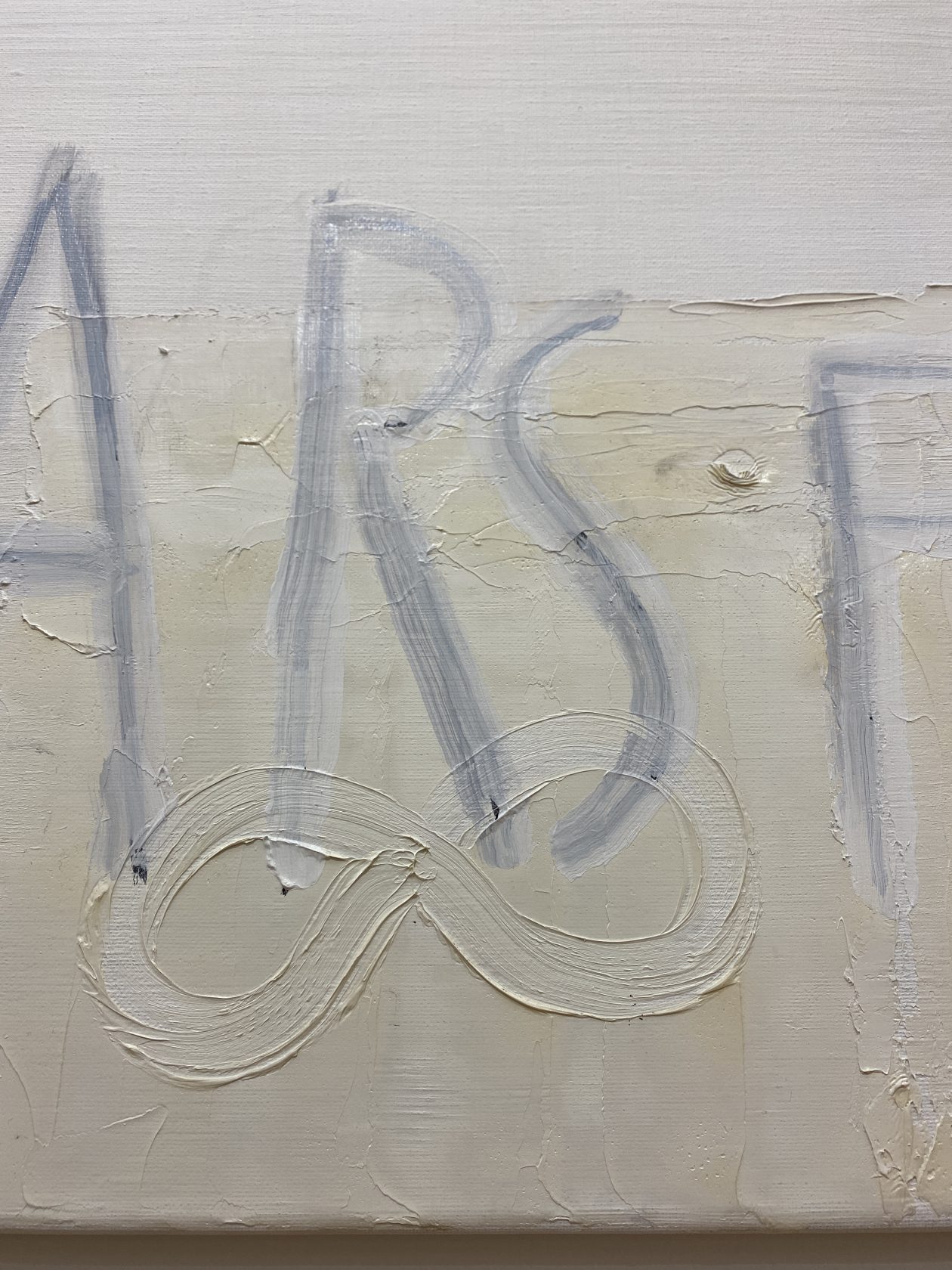 De losse en associatieve manier waarop Swennen schilderkundig de relatie aangaat met (het begrip) taal geeft mij als toeschouwer een gevoel van vrijheid; alles is mogelijk.