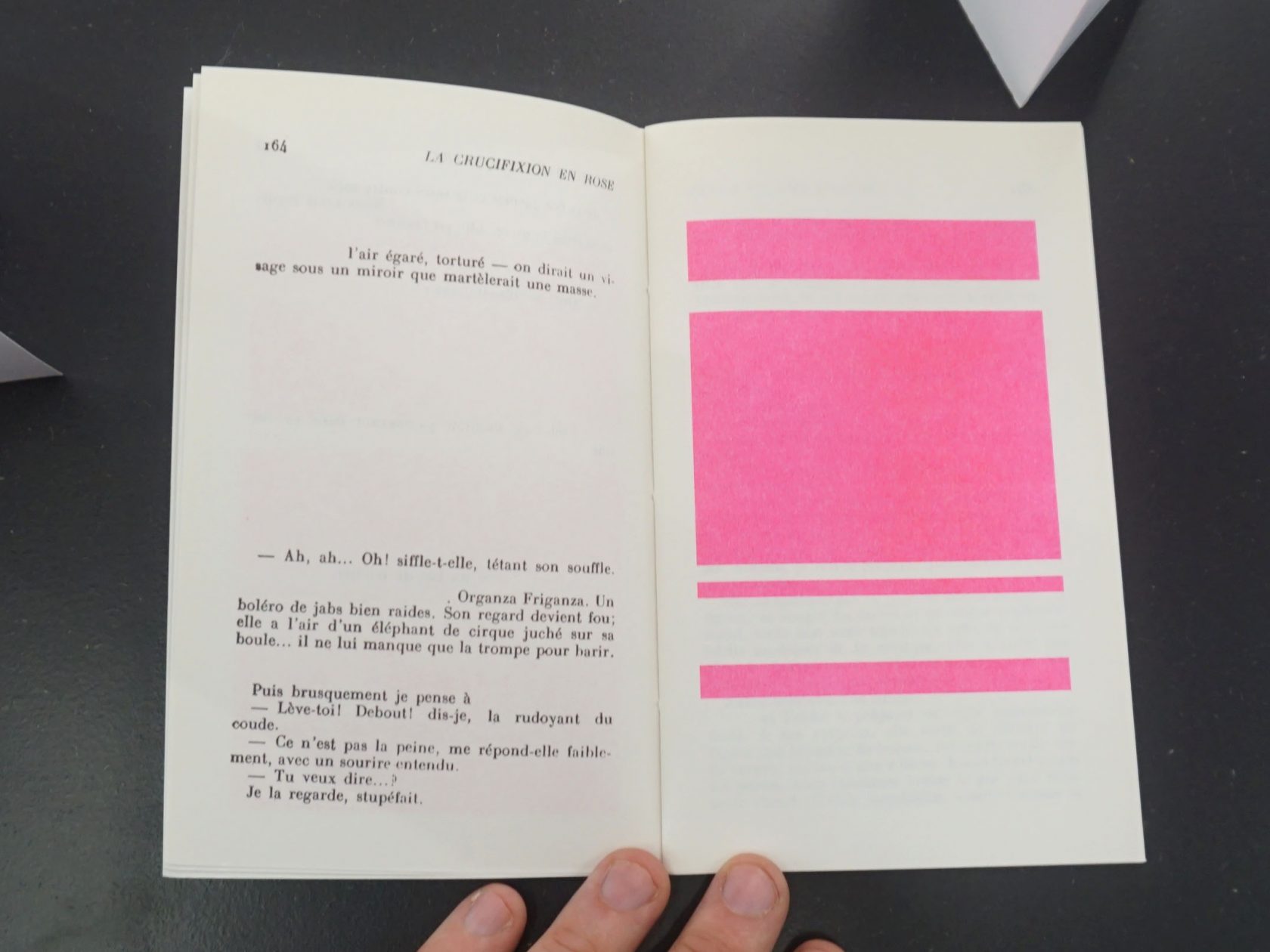De vierde tentoonstelling in deze ruimte is van de Belgische kunstenaar en uitgever Bernard De Villers (1939) die een serie kleine delicate boekjes laat zien waarin inhoud en vorm geheel in elkaar opgaan. Zo bladeren we door boekjes over ‘niets’ en een heruitgave van een misdruk waarin de verdwenen regels op de tegenoverliggende pagina worden weergegeven als roze vlakken.