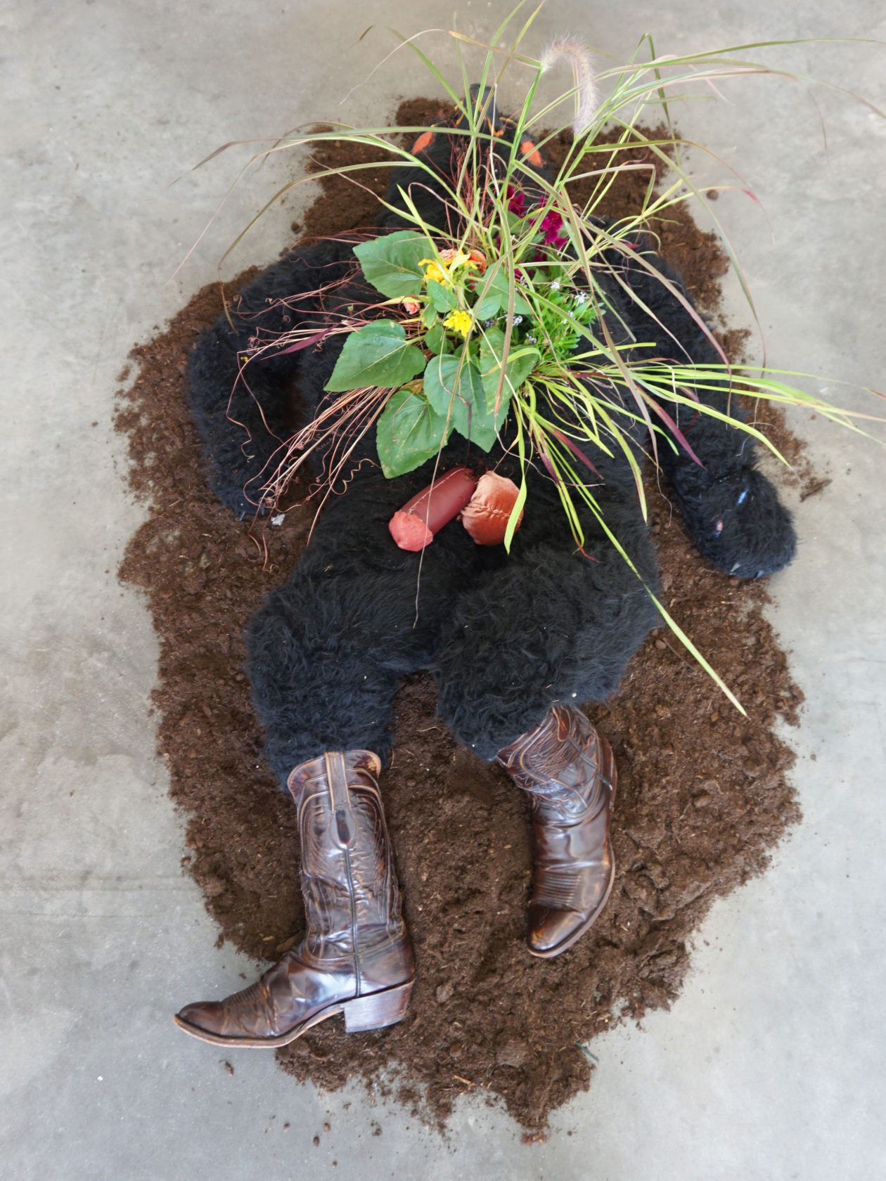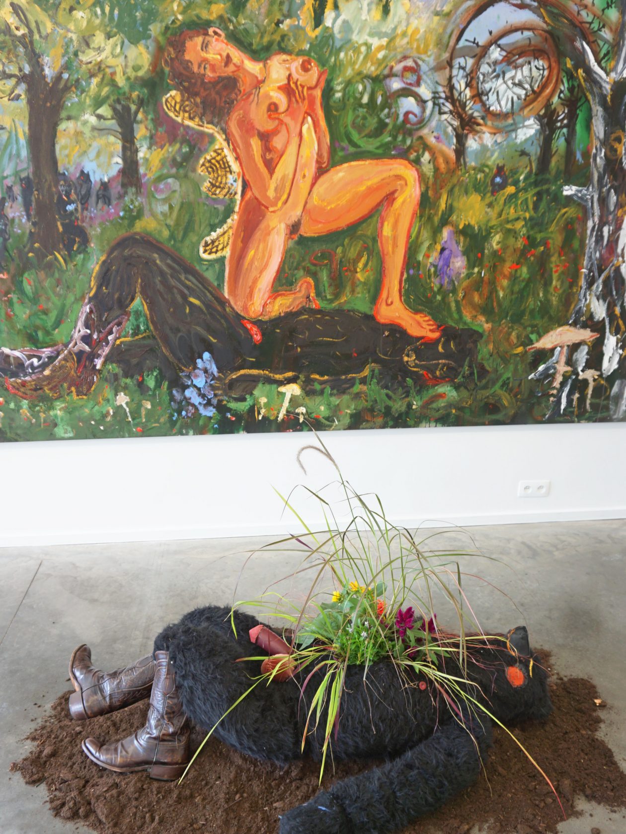 In de tentoonstelling ‘Maternity Vacation’ draait het om de relatie tussen zwangerschap en kunstenaarschap. Beiden zijn hier een explosieve uitbarsting van creatie en energie waarachter ook een seksuele lading schuil gaat. De rol van de vader is gereduceerd tot dat van een ter aarde gestorte beer met cowboy laarzen. Mother rules!