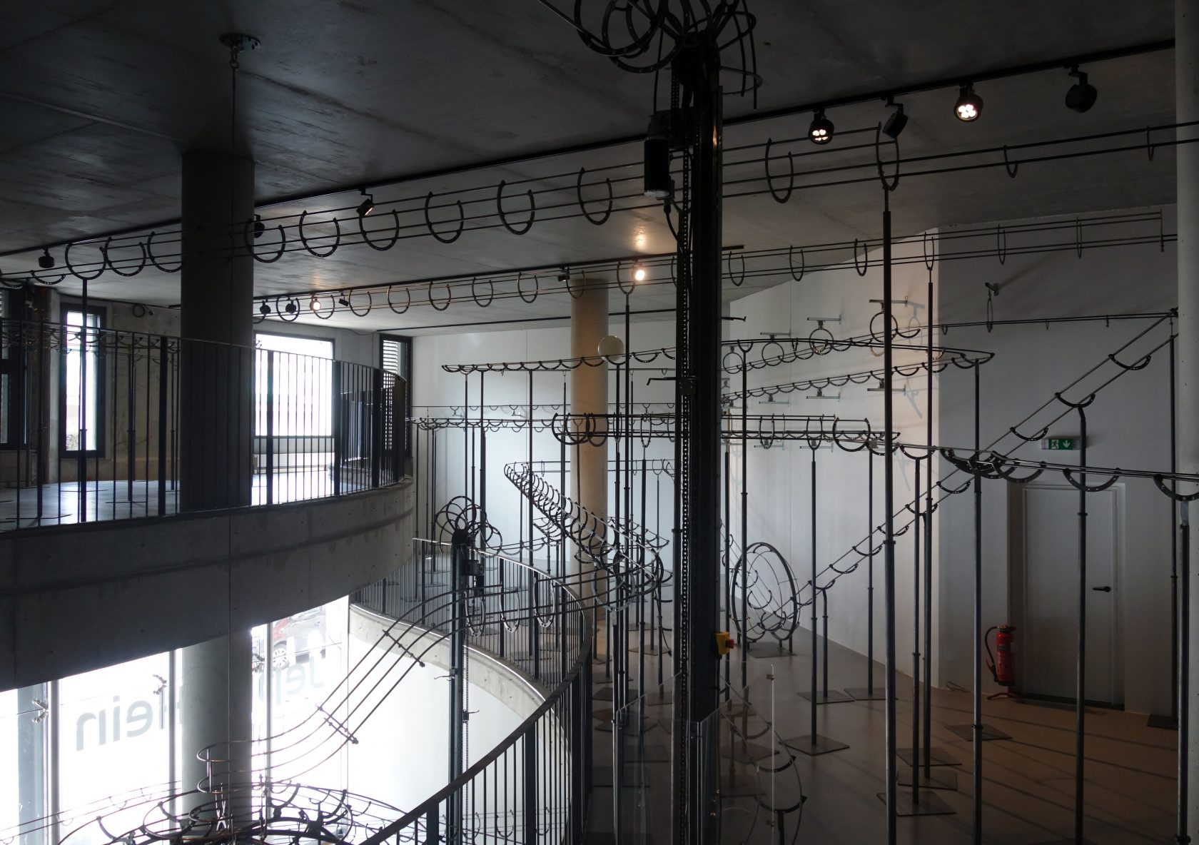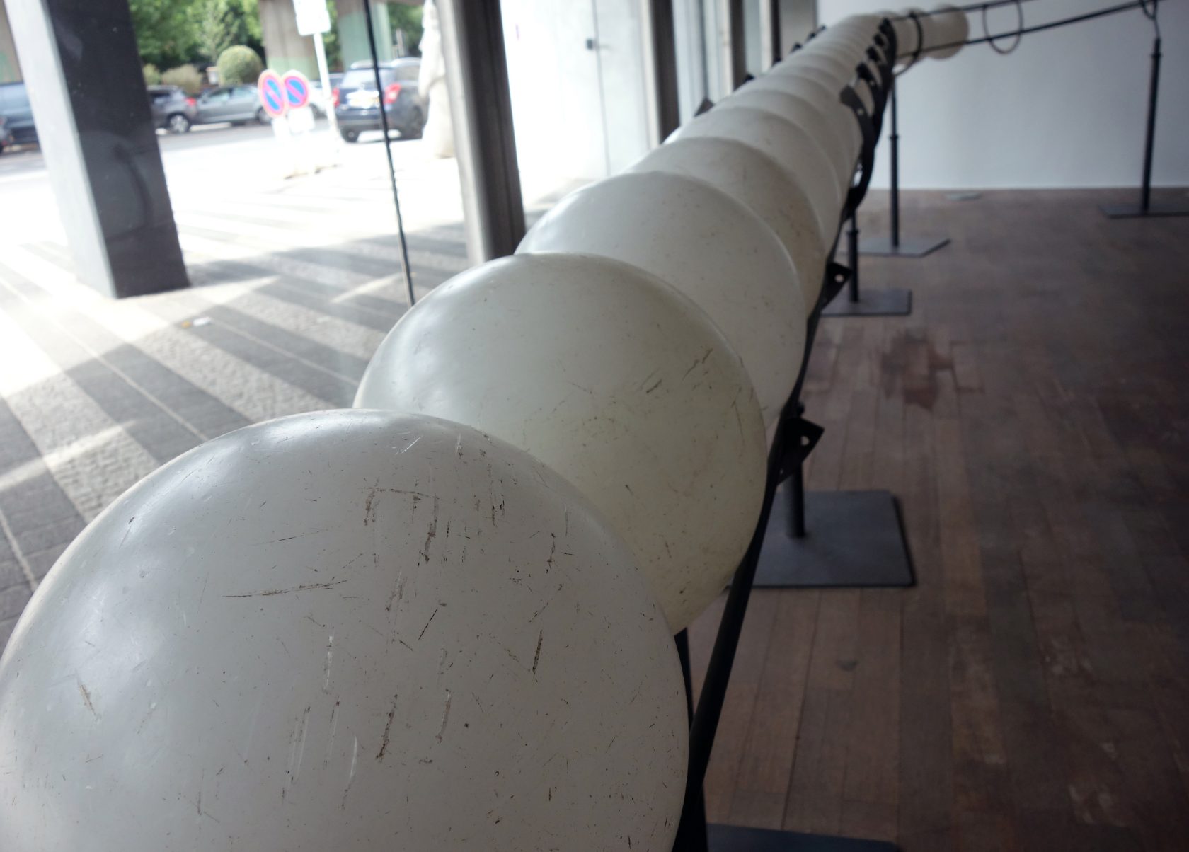 Over Jeppe Hein gesproken: voor nop kun je naar de Konschthal en je mag nog op een knop drukken ook, waarmee je een kunstwerk van hem in gang zet (Distance). Een bal gaat via een ingenieuze constructie door het hele gebouw.