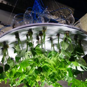 Denk bijvoorbeeld aan planten die door AI’s verschillende input krijgen en zo op verschillende manieren groeien. Een kwal die je met virtual reality kunt volgen. Muziek maken door planten te aaien. En planten die ondersteboven groeien.