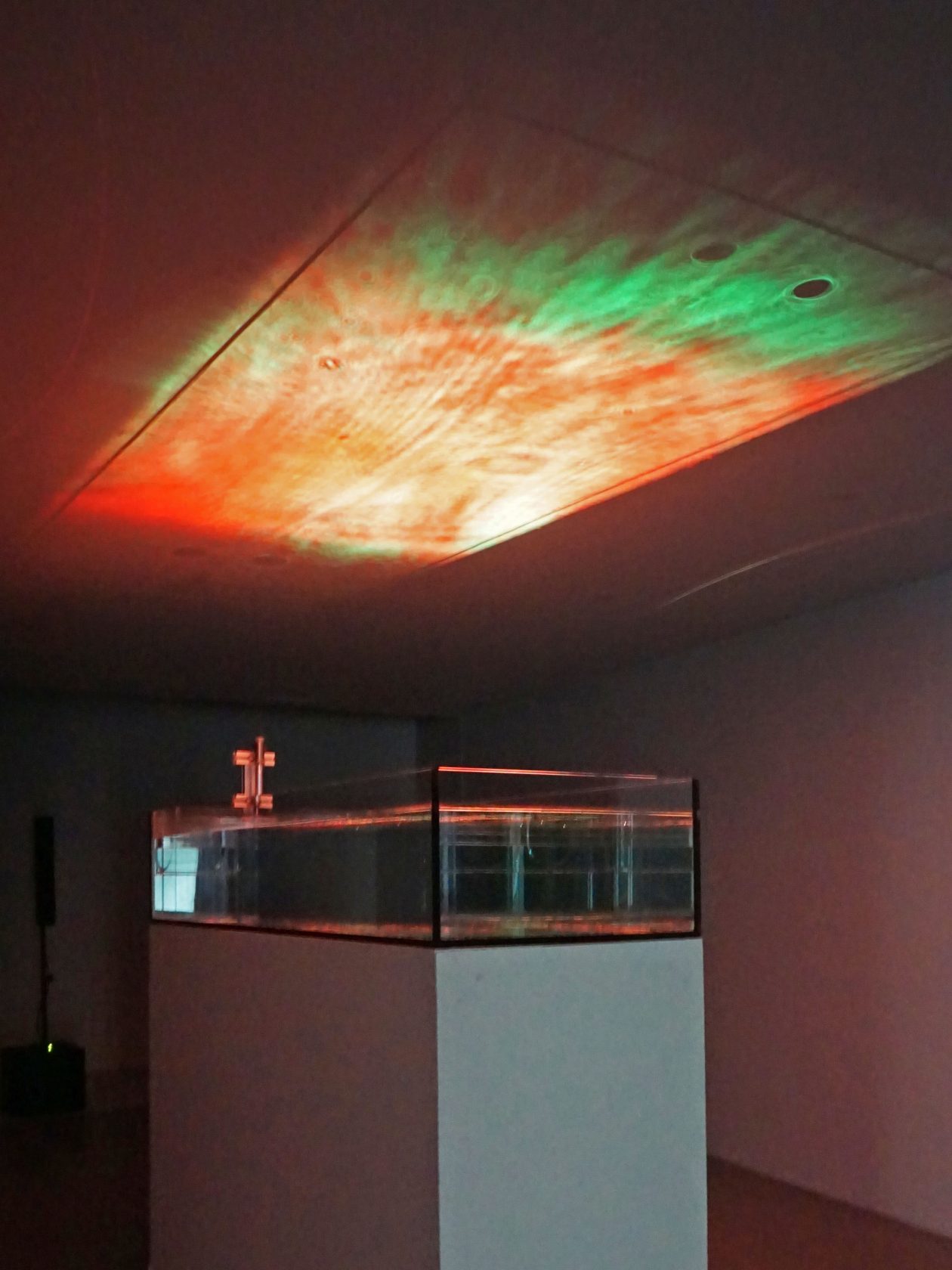 Ook zoeken kunstenaars de vrije ruimte in volksverhalen of abstracte werelden. Zo heeft het in Den Haag woonachtige duo Evelina Domnitch / Dmitry Gelfand een onderwaterwereld gebouwd waarin visuele zwarte gaten worden gecreëerd met behulp van golfstroming en zwaartekracht. Het wateroppervlak zelf geeft het geheim nog niet helemaal prijs. Een lichtprojectie op het plafond maakt zichtbaar wat er zich in de waterbak afspeelt. We moeten voorbij de oppervlakte kijken, dieper, verder of in dit geval hoger. Of in het luchtledige, zoals in de video ‘Void’ van Irina Anufrieva, dat niets anders laat zien dan een vrouw en haar herinnering aan pijn. In een zwarte ruimte zien we hoe de vrouw nog altijd geluiden van pijn uitstoot, ook al is de oorzaak van het leed al lang verdwenen.