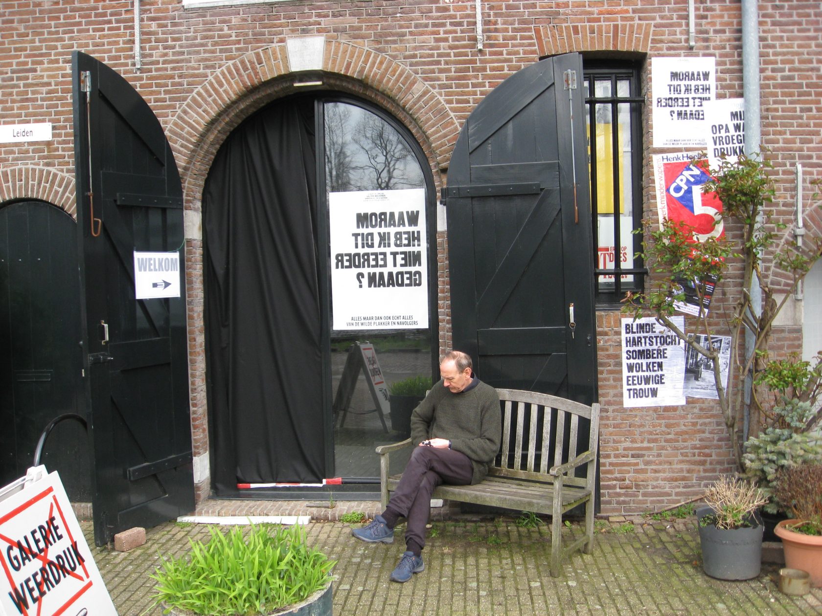 En dan is er dus die poster die dinsdag 21 maart om 2 uur uitgedeeld werd bij de opening van Herrebout’s expositie: DOE MIJ ER NOG MAAR EEN. Herrebout gaat er de komende twee weken over zitten nadenken in Galerie Weerdruk “en dan snap ik precies wat er aan de hand is met deze posters”. Daarna zal hij doorgaan tot hij de op één na onderste steen boven krijgt. Niet die onderste, die van die identiteit want “ik wil helemaal niet weten wie het is.”