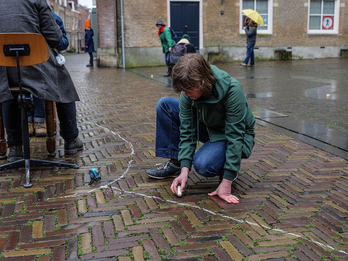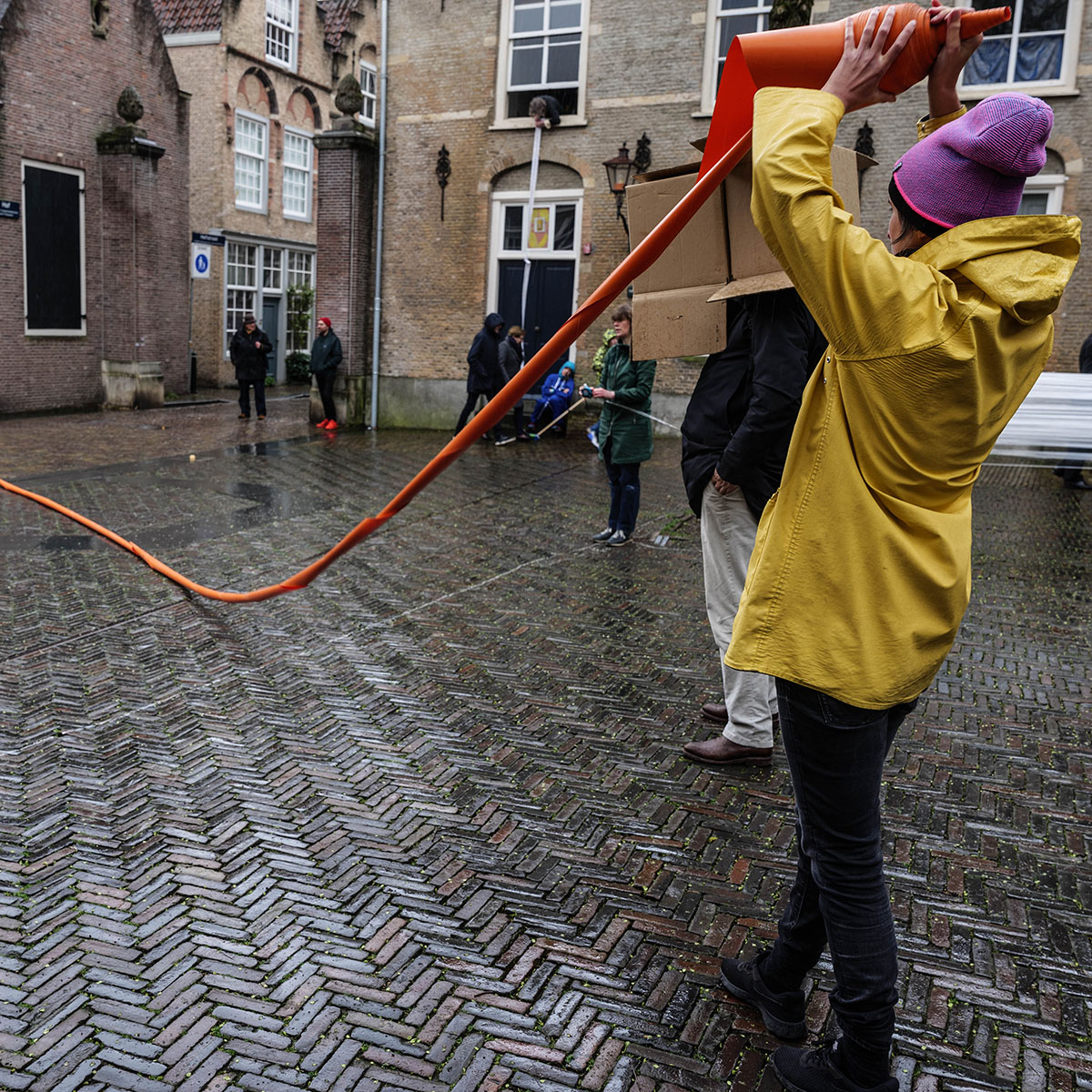 Op een regenachtige zondagmiddag komen een twintigtal kunstenaars bijeen op uitnodiging van kunstenaarsinitiatief 222Lodge, dat de organisatie op zich heeft genomen. Het binnenplein in het historische centrum van de oudste stad van het land, waar ook museum Hof van Nederland aan is gevestigd, is een publieke ruimte met specifieke eigenschappen. Kunstenaars uit verschillende delen van het land zijn er voor naar Dordrecht afgereisd.