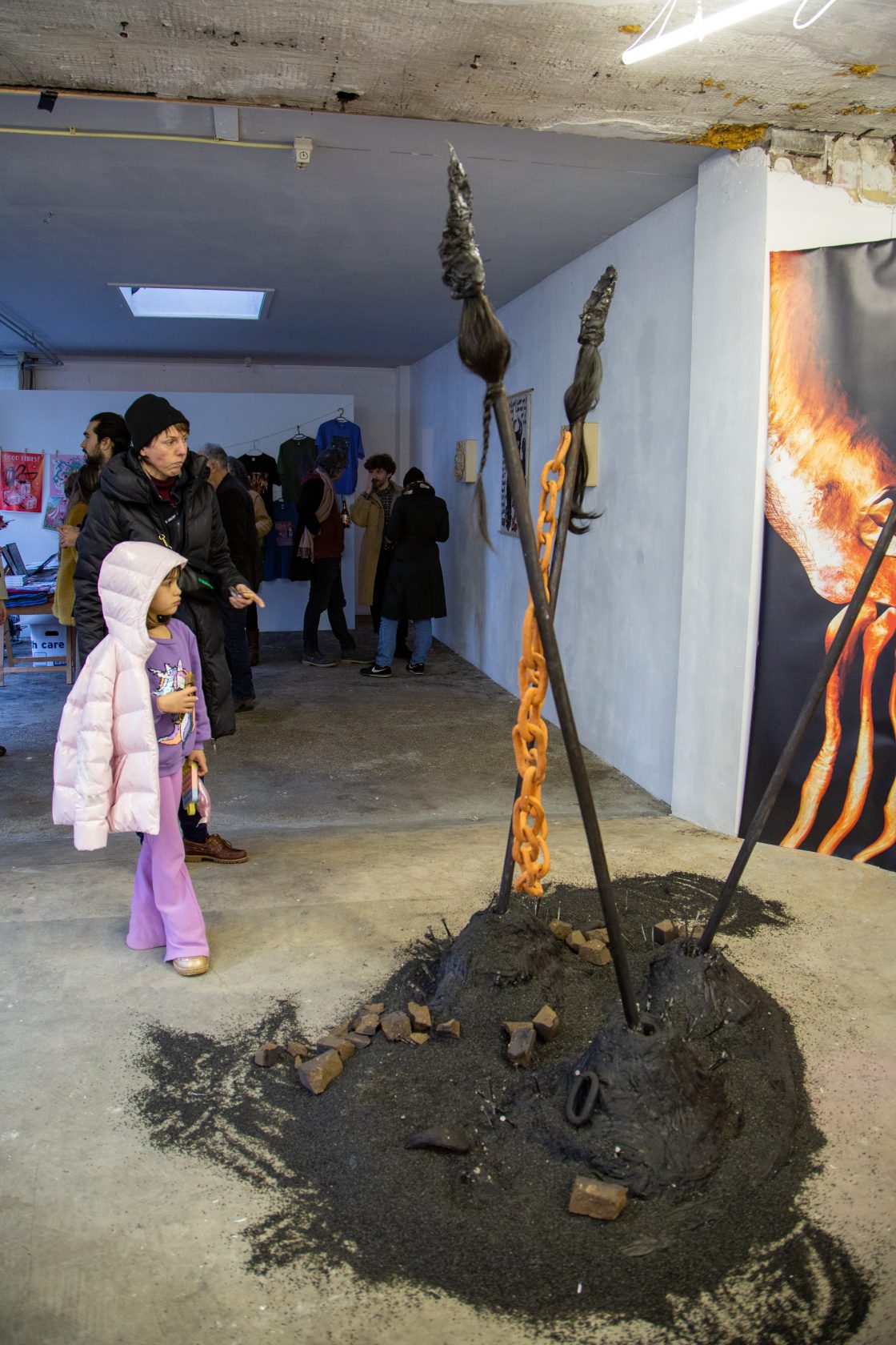 Zoals het een underground galerie als Trixie betaamt is er deze eerste helft van maart werk te zien van vier jonge kunstenaars die zich bij het maken niet laten begrenzen door conventies. Ze zeggen elkaar gevonden te hebben doordat ze alle vier vluchten in hun werk. Niet uit angst, maar omdat ze zich willen omgeven met iets dat geheel eigen voelt. Vaak buitenissige installaties dus. Niet voor boven de bank. Misschien wél bíj een bank, in het zicht van de buitenwereld.