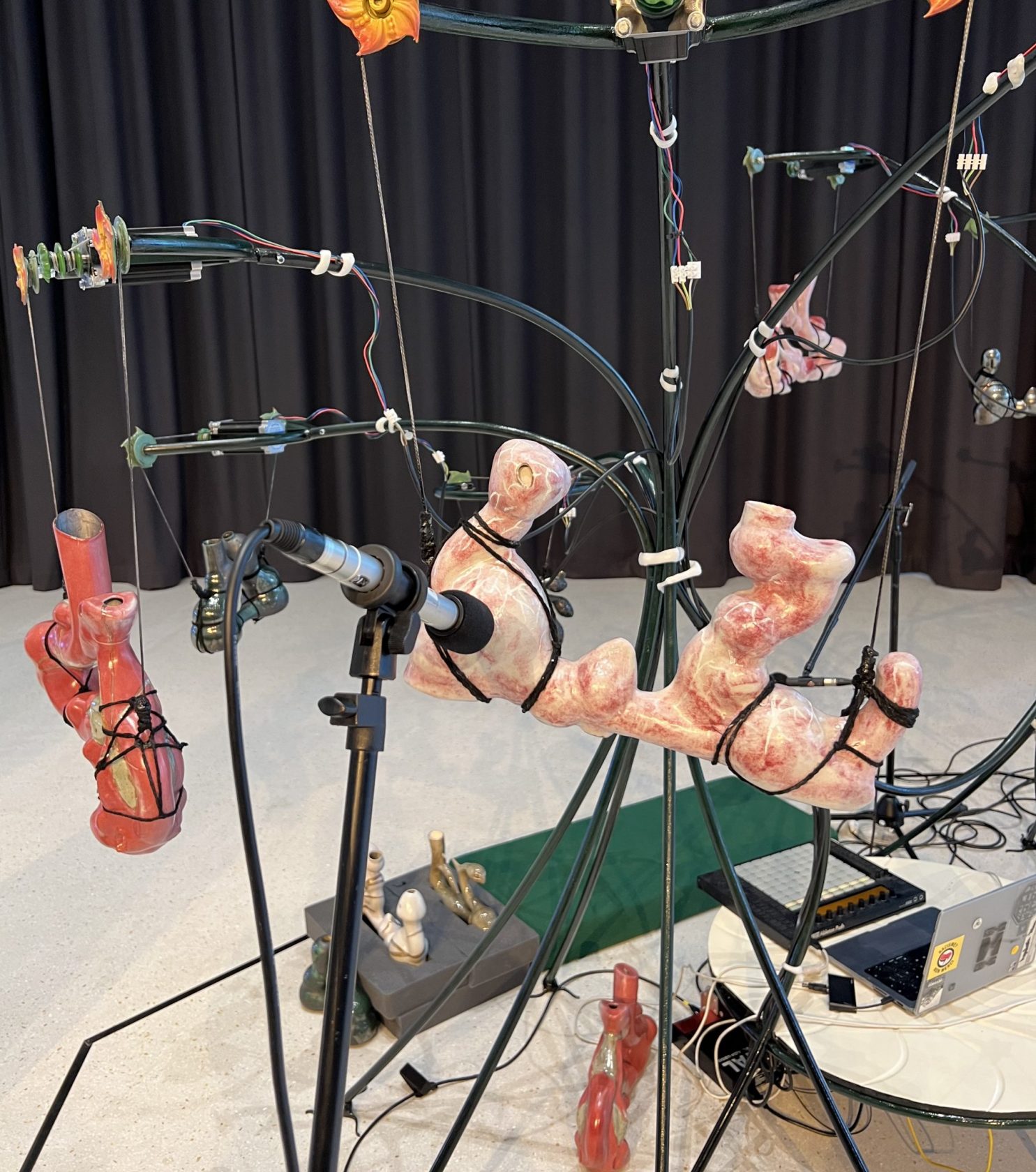 Proximity Music: Visceral Acts is an exhibition inviting us to engage playfully with mind and body. Presenting a diverse range of works emerging from the backdrop of a health crisis, it brings into question ideas of health and sanity. Through the lens of personal, creative if not unorthodox approaches, artists help us trace paths backwards and forwards in time, connecting with different forms of knowledge. When old habits become inadequate to deal with an era of instability, what can we learn from the creative practices of artists, which can aid us in the search for a new equilibrium?