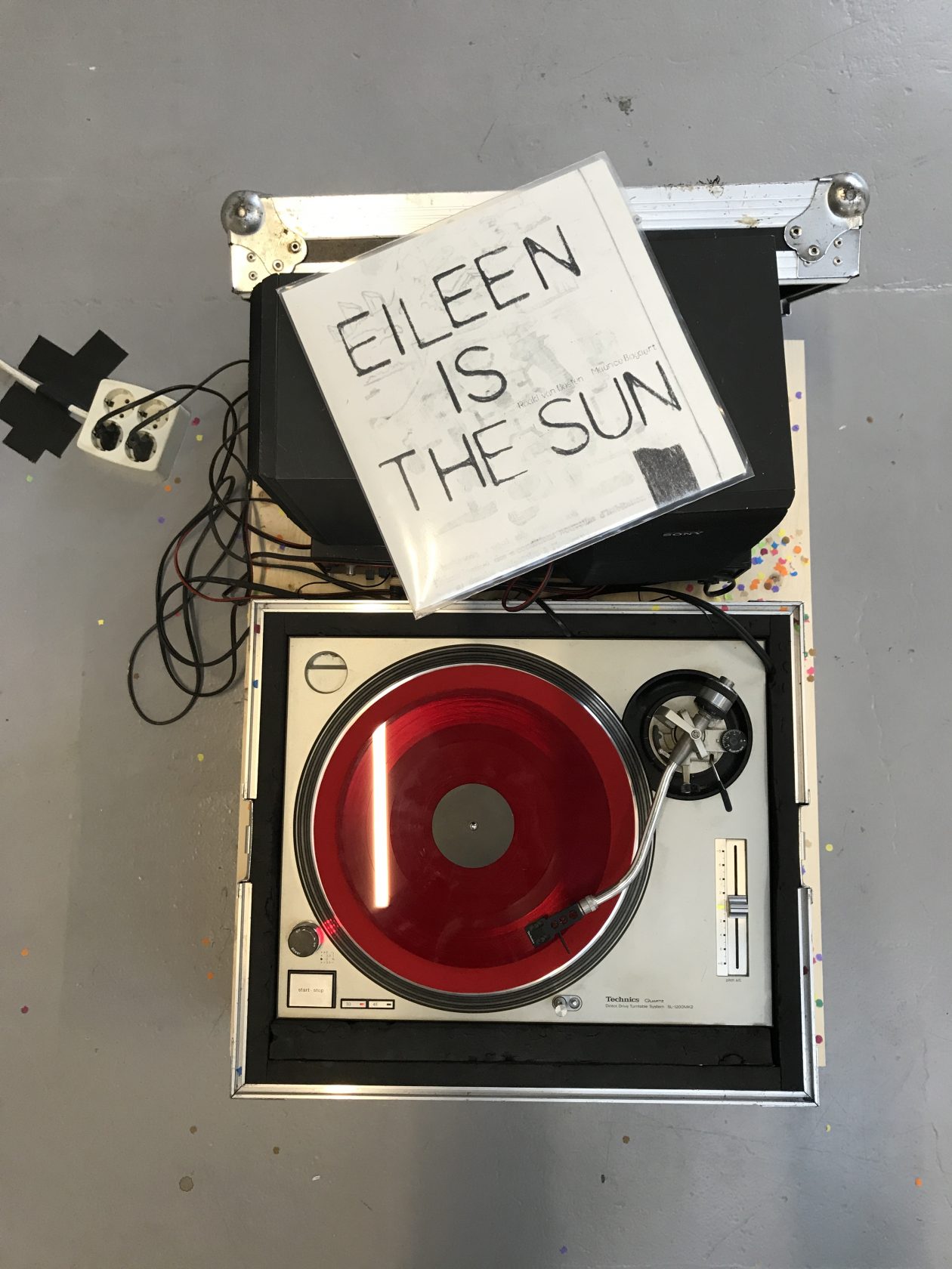 Tussen de twee muren en de panelen staat een pickup, die zacht muziek laat horen. De hoes van de plaat ligt erbij: Eileen Is The Sun staat erop. Het is het speciaal voor de totaalinstallatie door Roald gecomponeerde stuk, net als de soundscape die in de volgende expozaal te horen is. Daar hangt een enorme discobal aan het plafond, in de vorm van de E-1027 villa. Vrolijk draaiend kaatst ‘ie het licht terug naar alle muren en schittert als een heuse zon. Maurice en Roald maakten met hun tentoonstelling een requiem, een poging de architecte eeuwige rust te geven en zich te verzoenen met haar lot.