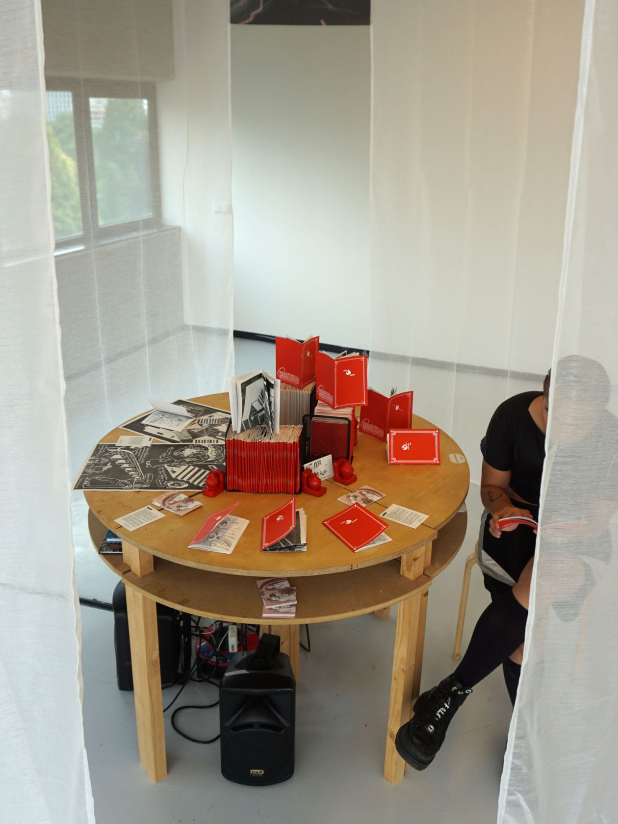 Na wat teleurstellende ervaringen in het hoofdgebouw, leven we hier weer helemaal op met de licht ontregelende videolezing van Martina Laruffa, een imponerend wandkleed van Fanja Bouts, constructieve tekstuele ingrepen van Hannah Zeeman, een meeslepend videowerk van Surim Kim of de visuele abstracte lichtprojectiepoëzie van Sara Pezzolesi (die nog beter werkt zonder tekst).