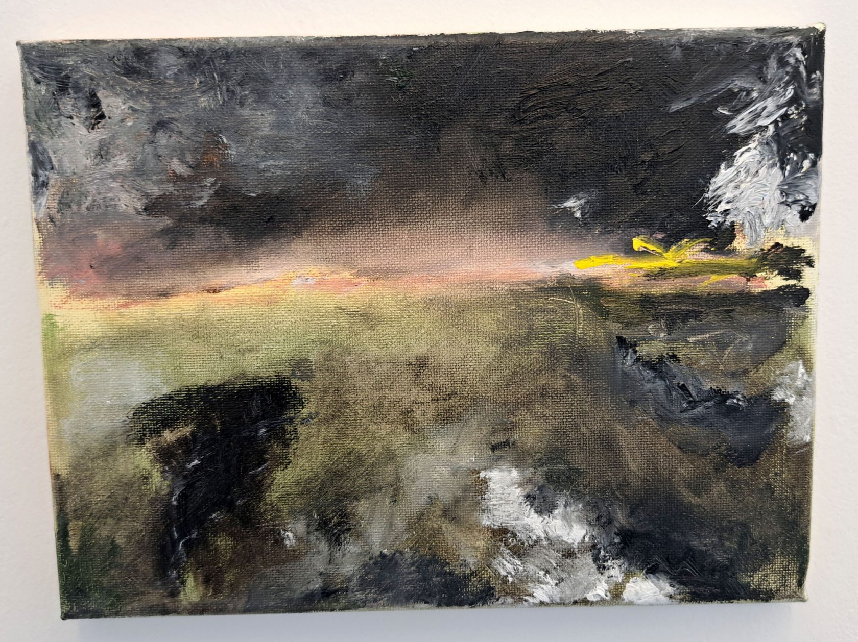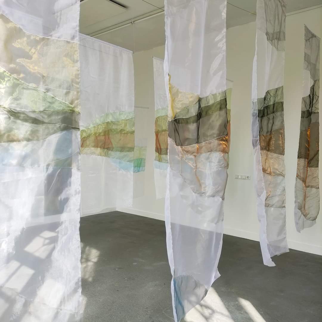 Tot en met 24 september is er de duotentoonstelling ‘Lichter landschap’ gaande. Kunstenaars Hilde Huisman en Wia Bouma reageren in hun werk op elkaar en reflecteren op de landschappelijke inspiratie en de ervaring van de natuur. Met de pasteuze traagheid van verf en kwasten en de lichtheid van textiel geven de kunstenaars een representatie van landschap, dat zowel verdicht kwetsbaar maar ook onscherp en fragiel is. Monumentaal werk hoeft niet altijd indrukwekkend groot te zijn. De landschappen van Wia Bouma zijn imposant op een beperkt formaat. Krachtig weet zij in de meest abstracte zin een omgeving vast te leggen. In de ruwe lijnvoering weet zij bij het uitzicht de emotie te pakken. Het zijn nauwelijks bestaande situaties, niet te plaatsen locaties, geen realistische omgevingen. Maar de idee en het gevoel is wel plaatsbepalend. Deze indruk gaf het landschap haar op die plek, op dat moment in deze gemoedstoestand. Strikt genomen zijn het geen landschappen, maar landschappelijke afbeeldingen. Composities die passen bij de ervaring van de ondervonden omgeving. De compacte benadering oogt monumentaal. Het gevoel is niet breed uitgemeten en geeft daardoor een gedetailleerde beleving.
