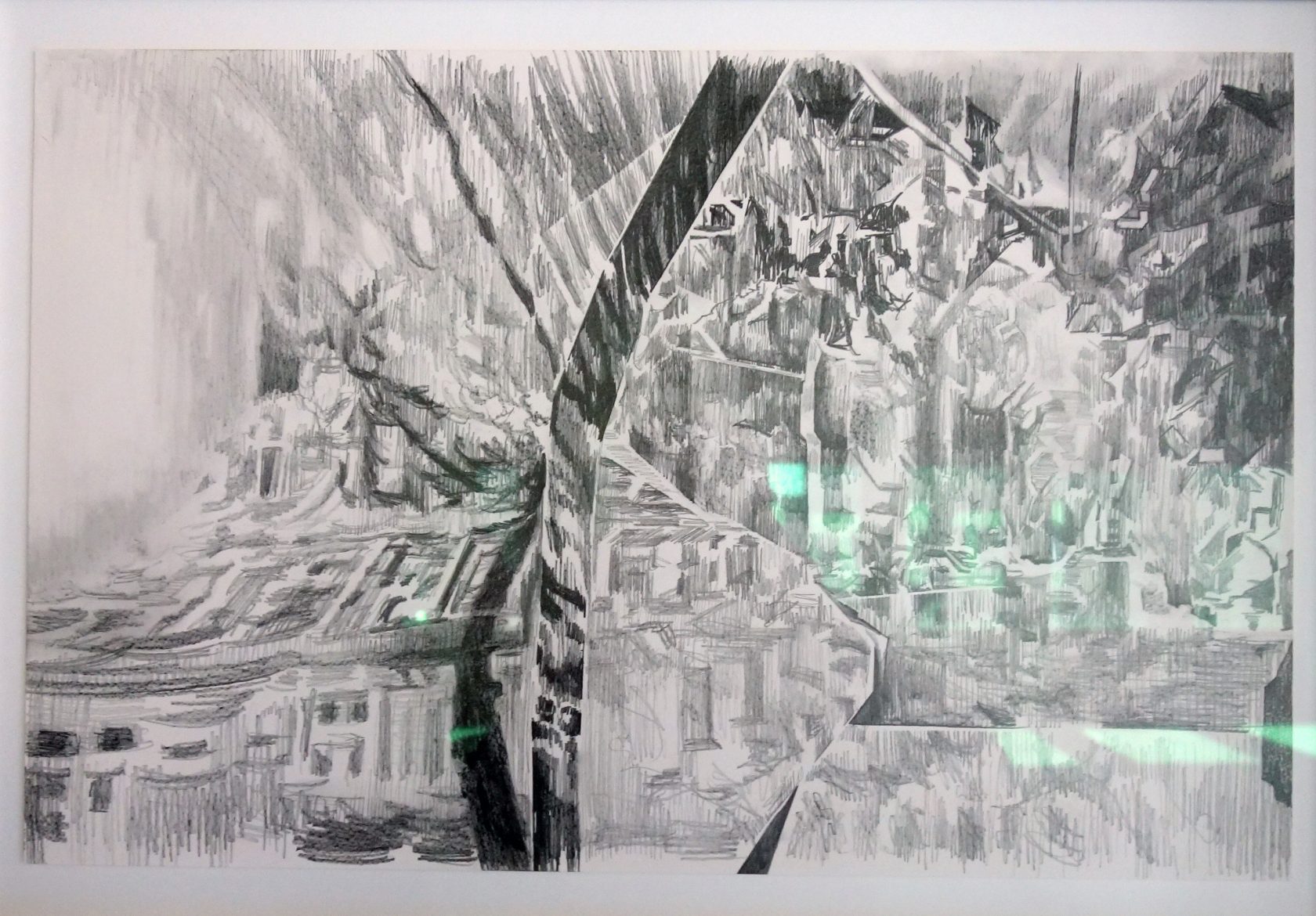 Het ene grote werk is groter dan het andere. Er zijn grote werken waar je toch bijna aan voorbij zou lopen, maar die toch nopen voor een langere blik. De tijdloze sciencefictionthema’s in potlood van Cathelijn van Goor (Future Past – Berlin Through the Looking Glass) is er zo een. Misschien knalt het minder maar het verwondert meer.