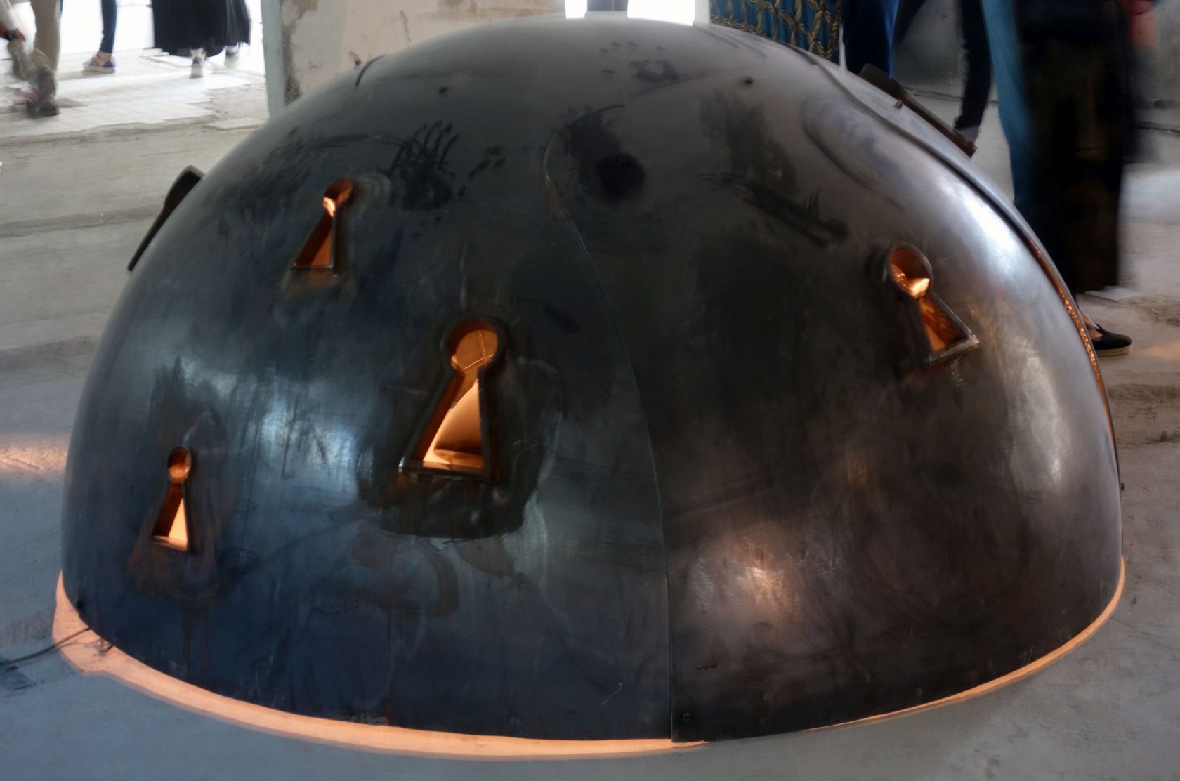 Serendipiteit is altijd leuk. De opgewekte en kleurrijke sleutels van Hugo Rocci (Llaves) passen ogenschijnlijk perfect bij de wat sombere metalen cocon met sleutelopeningen van Kees Elffers (Curiosity Killed the Cat).