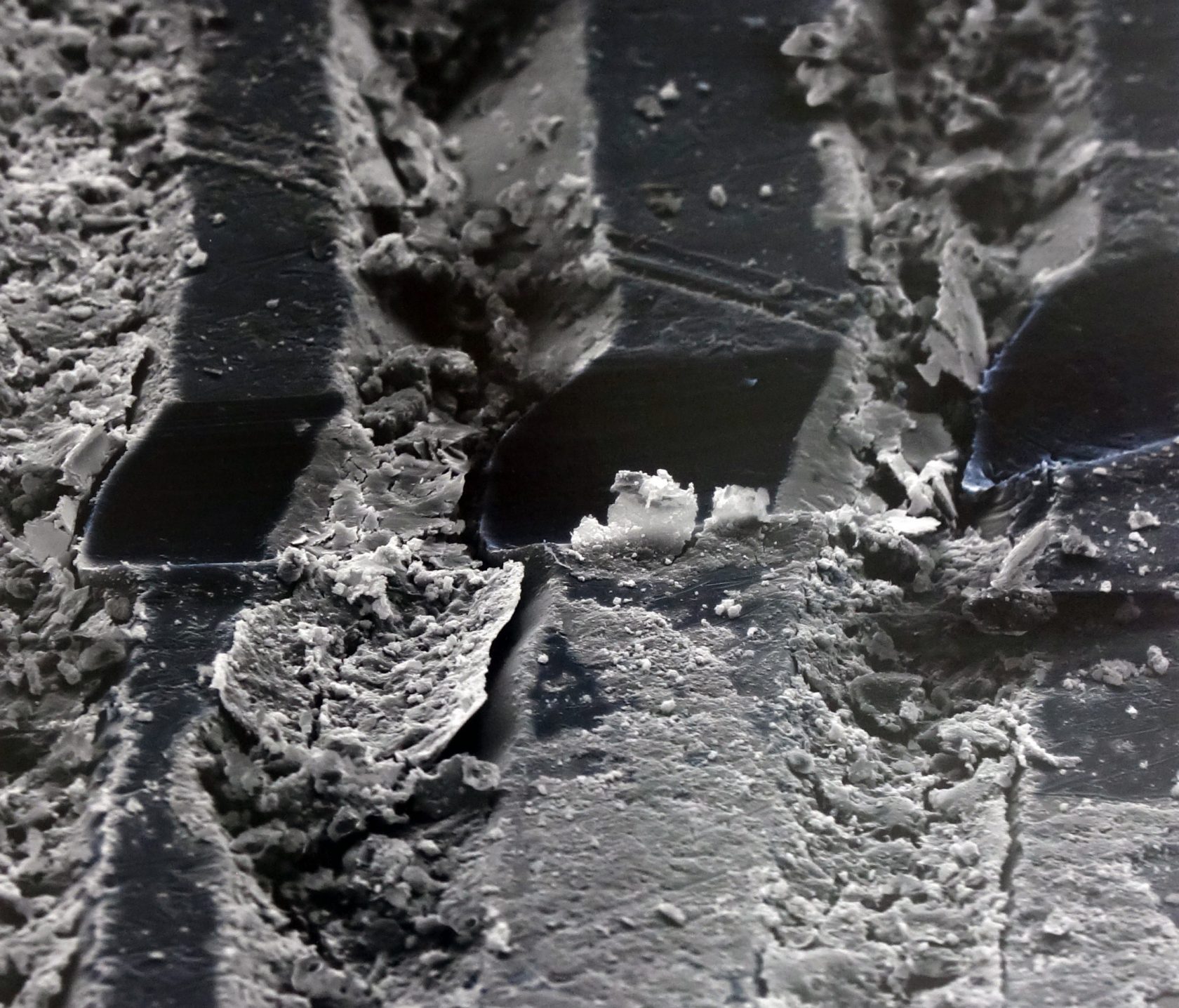 Hier zien we dat dus wél. Zelfs de groeven van vinyl hebben met extreme vergrotingen geen geheimen meer.