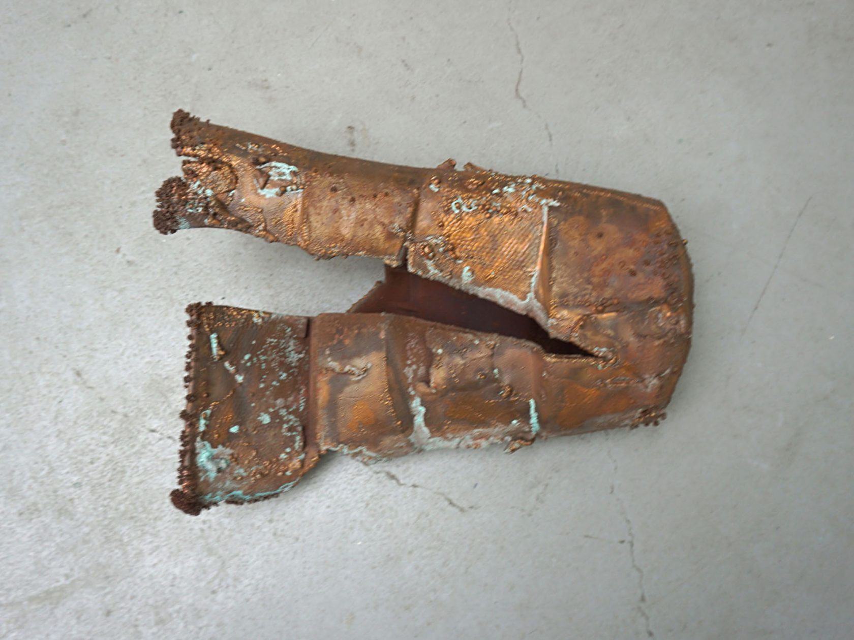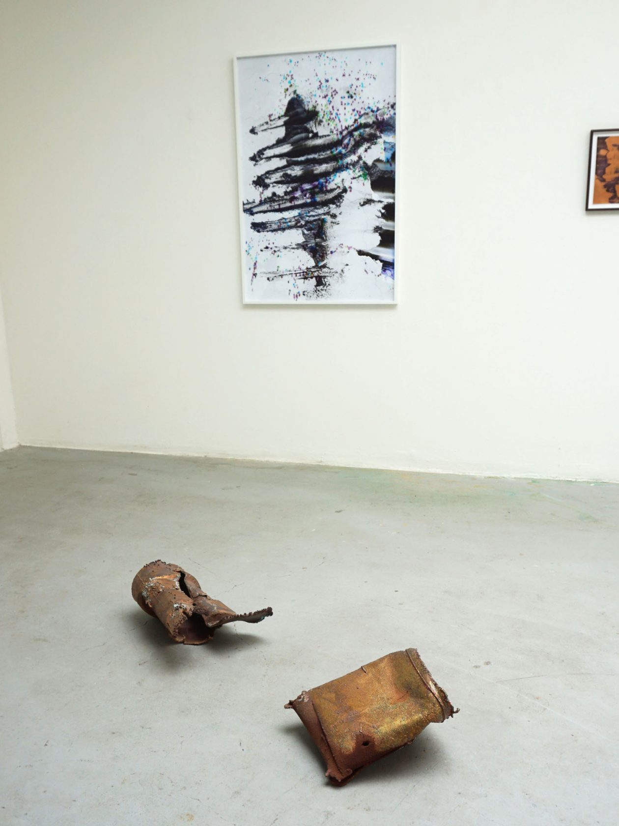 Op de vloer liggen twee objecten die lijken op achtergebleven lege koperen hulzen na een schietpartij. Het blijken vormen die zijn genomen van overreden verkeerskegels. In beide gevallen uitgeputte resten van een actie en verre van perfect. In het werk va Busch is niet alleen sprake van een gelaagdheid in beeld, zoals bij Van Zomeren, maar ook een gelaagdheid in betekenis, representatie en interpretatie. En gelukkig zonder dat je als kijker het gevoel krijgt in een optische illusie te worden geduwd.