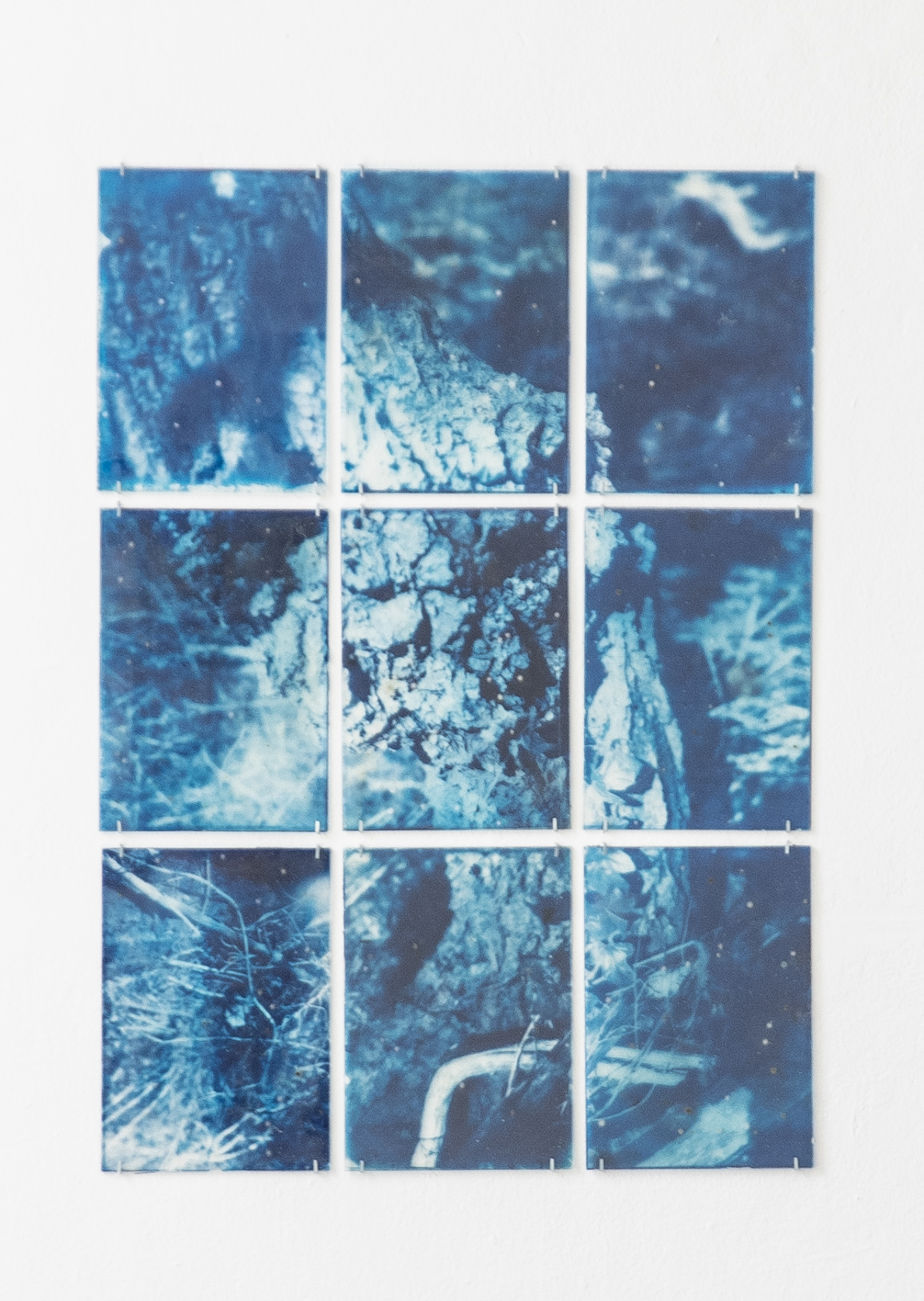 A cyanotype print is made of oxidised iron-based chemicals. It turns blue because of the sunlight. You wash out the chemicals and the blue stays.