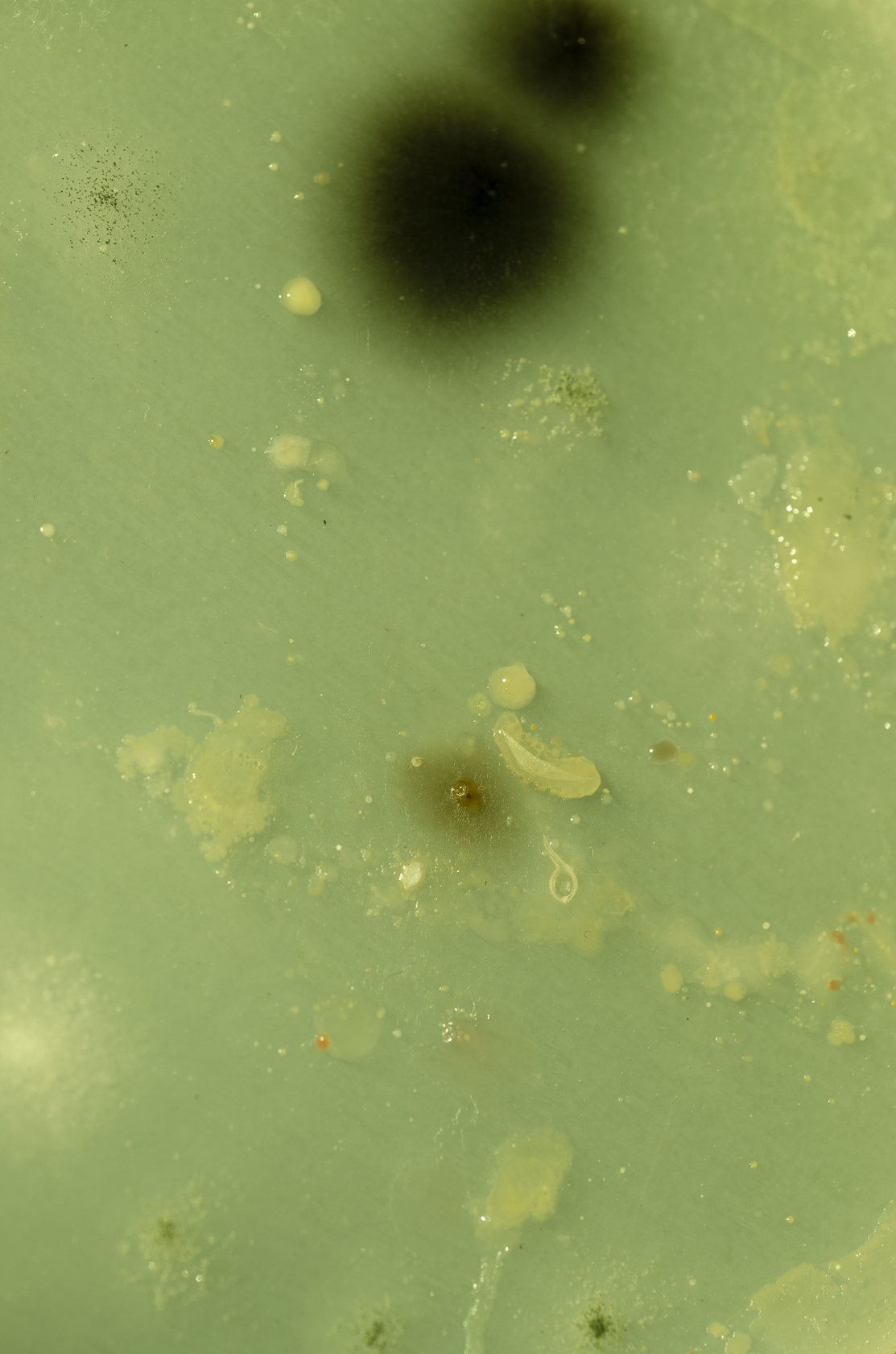 The film showed constructed landscapes in the Netherlands. When I put these negatives inside this medium where microorganisms grow, they took back control on how they represented this nature. As time goes by, they completely eat away what is on top of this negative and it is just them that remains what we construct to be an image.