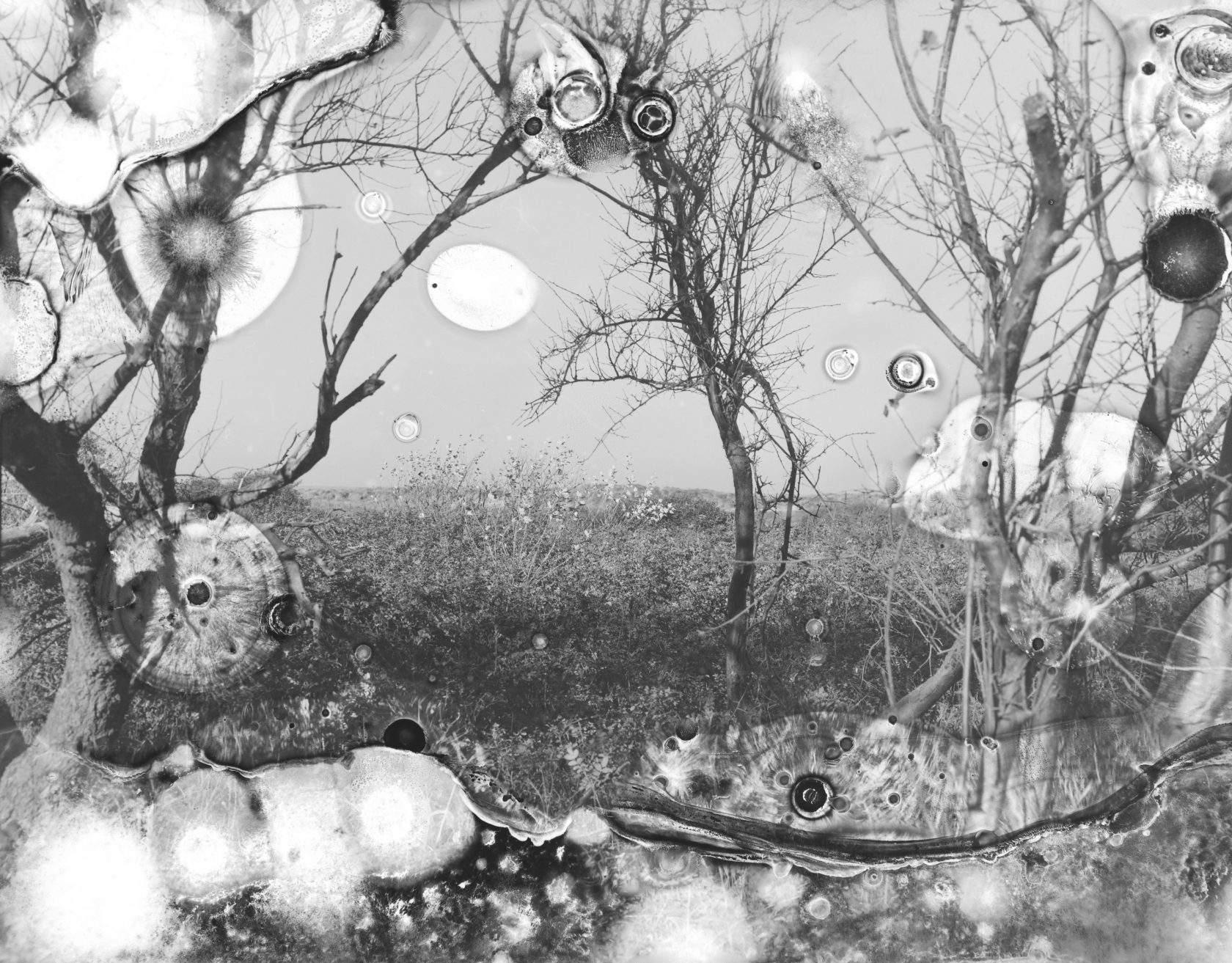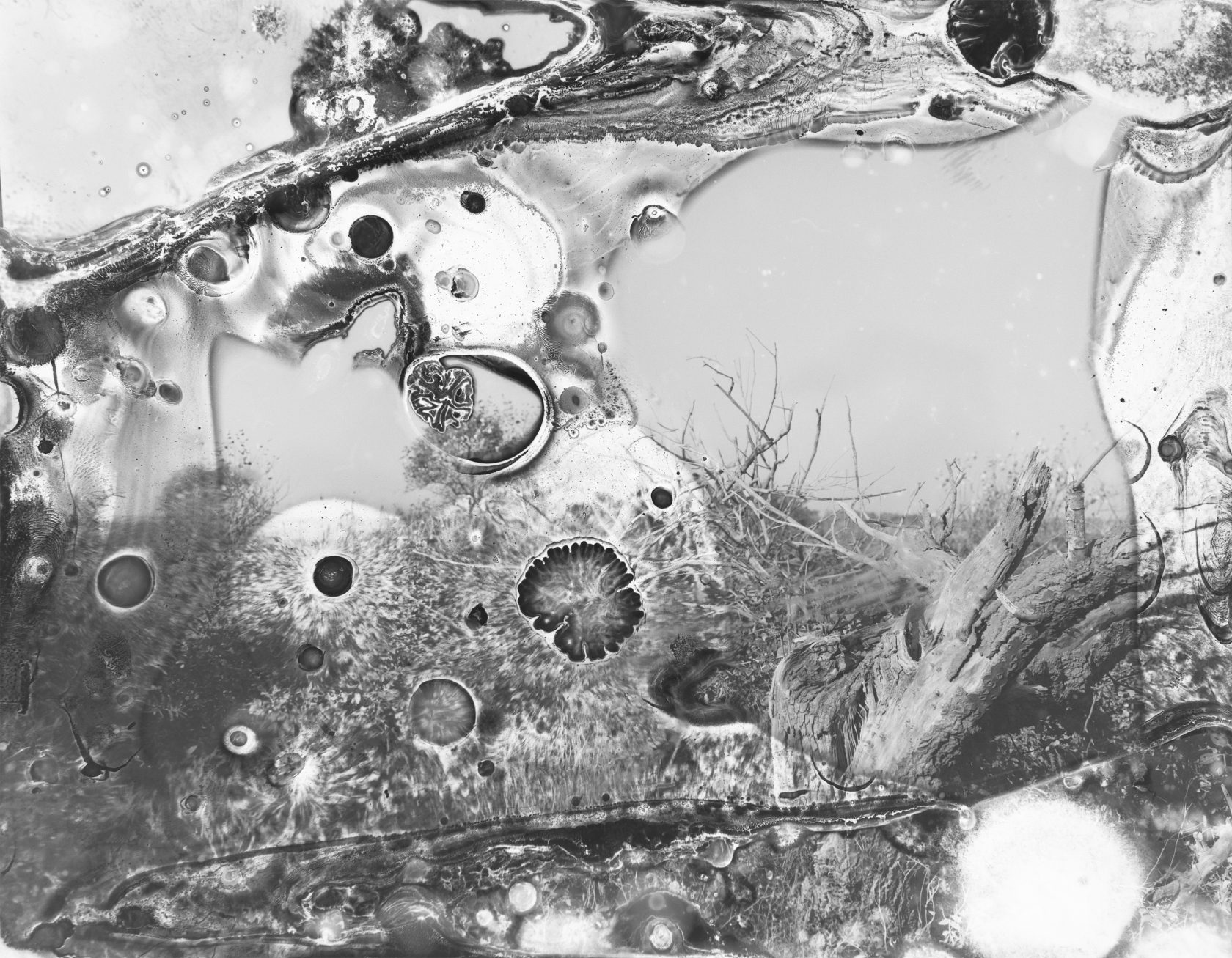 I used this emulsion to grow iron oxidising bacteria, a type of bacteria you find in riverbeds or next to rocks that have this copperish colour. In the water there’s a lot of iron that the bacteria oxidise. The image becomes more a place of living for natural processes, rather than a representation of nature.